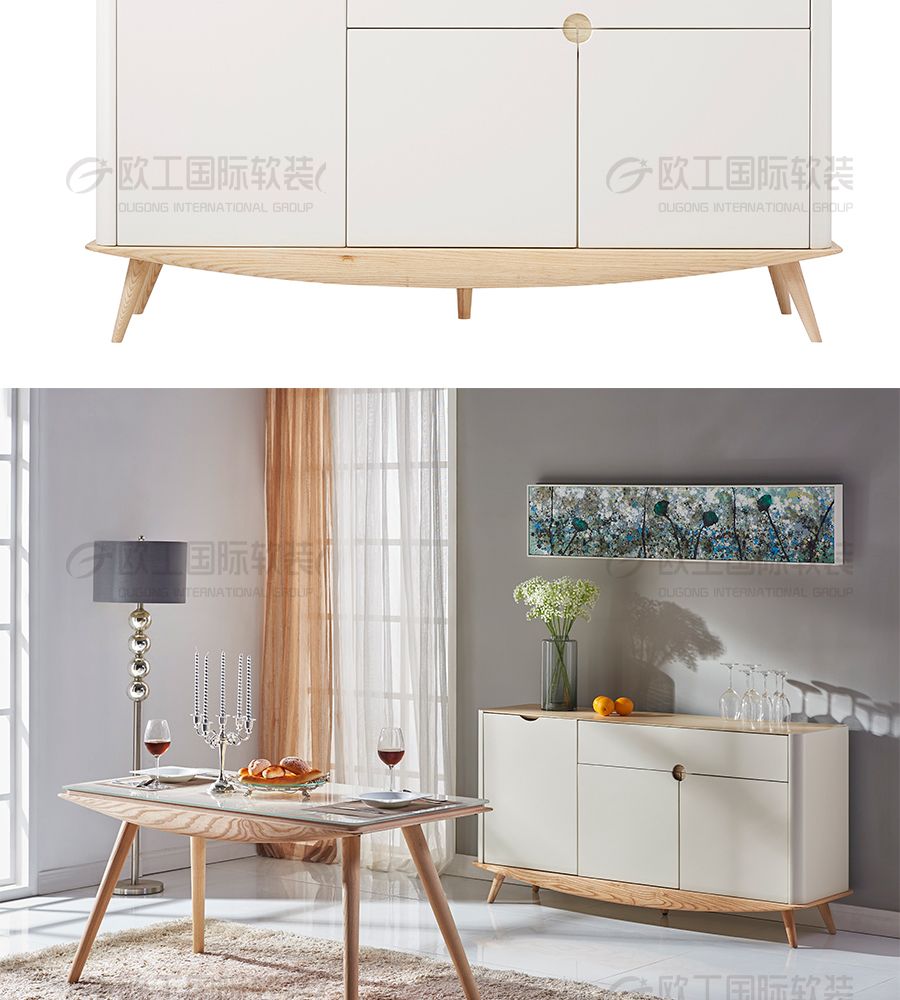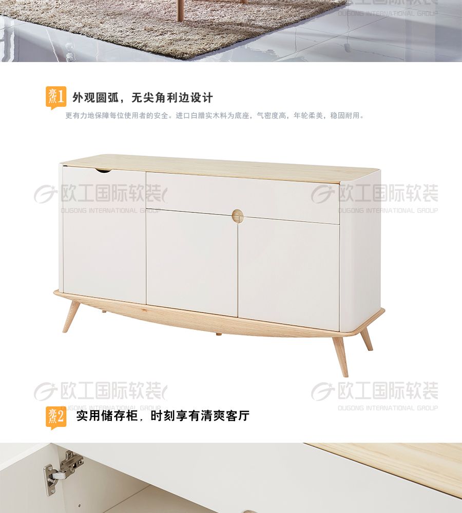 极简时代 餐边柜 极简 水曲柳木饰面+环保漆+E1级高纤板+五金烤漆底架