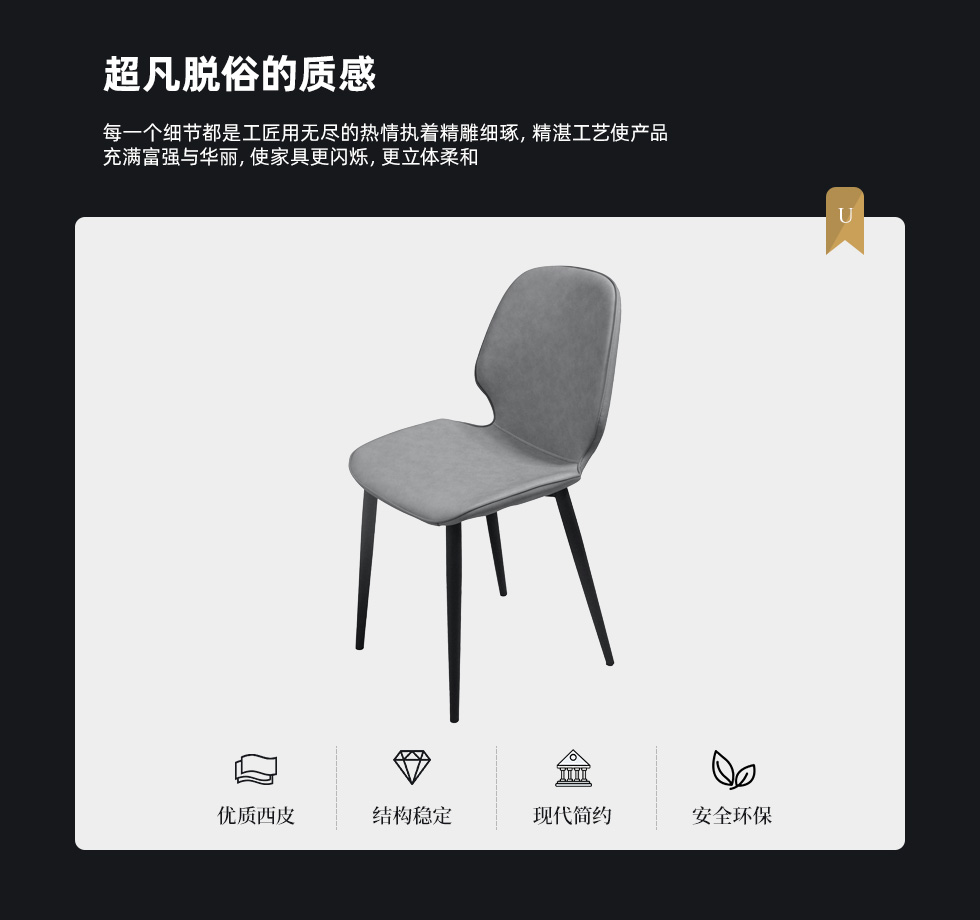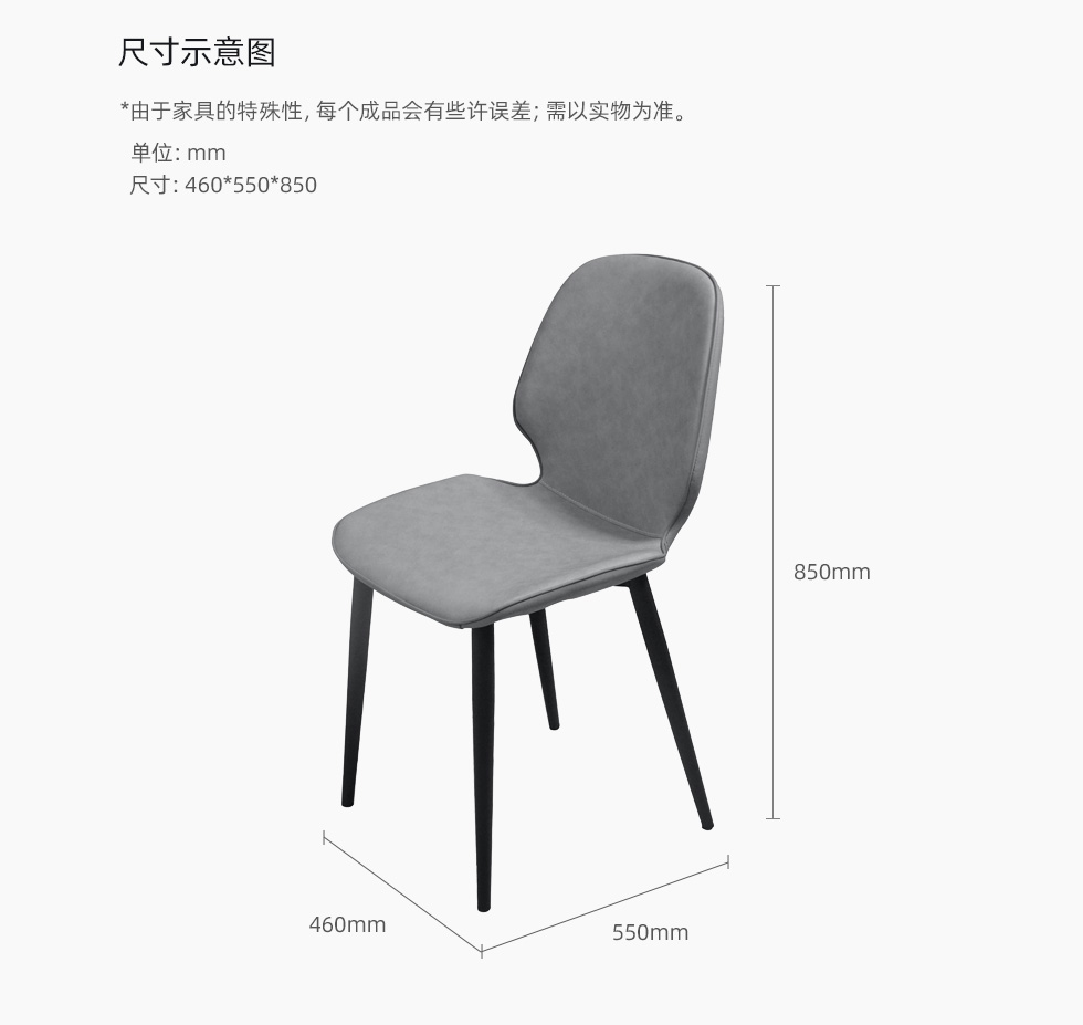 欧瑞驰 现代简约 餐椅 西皮+碳素钢(两把起售) |