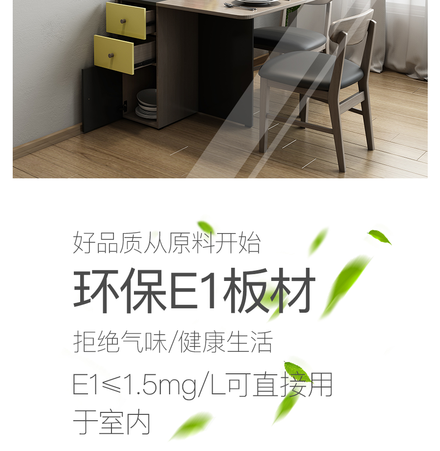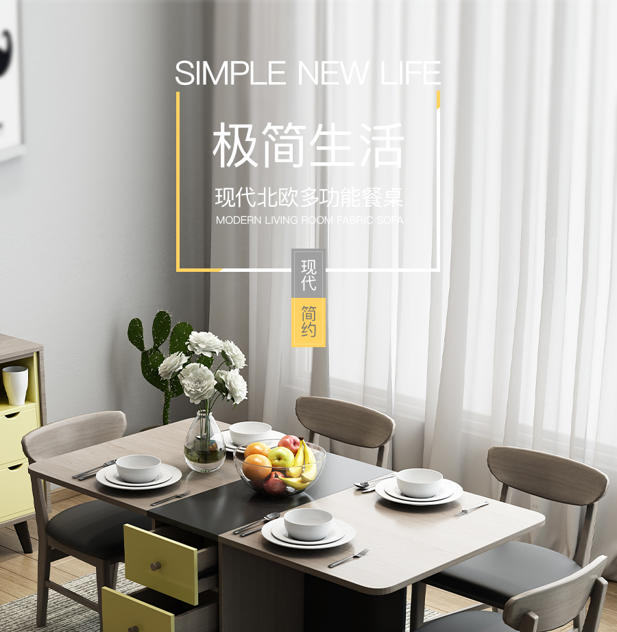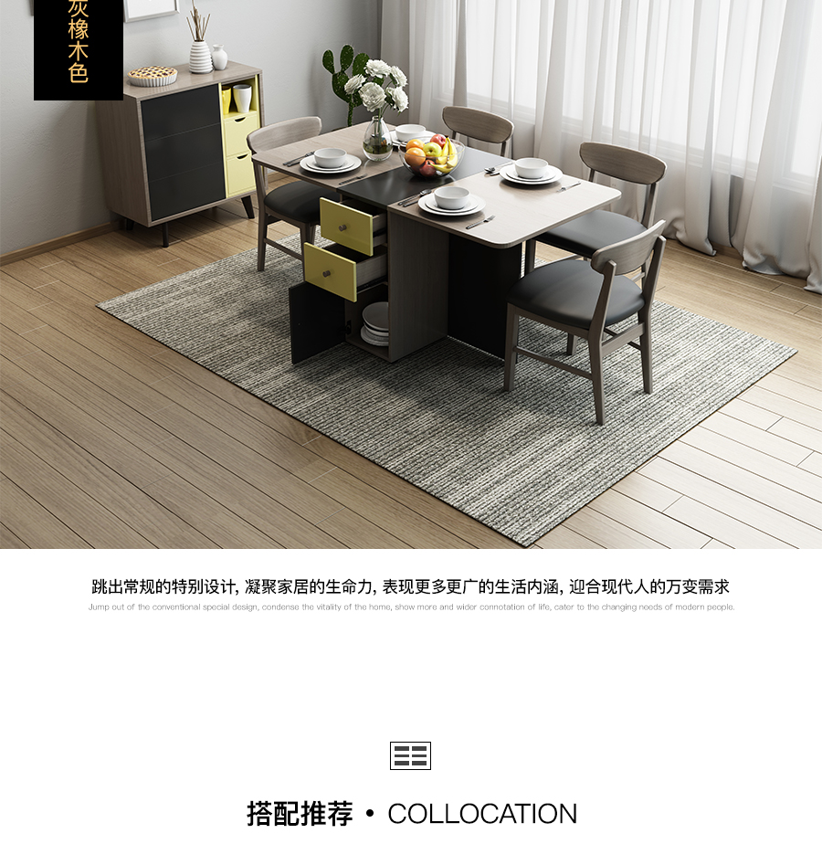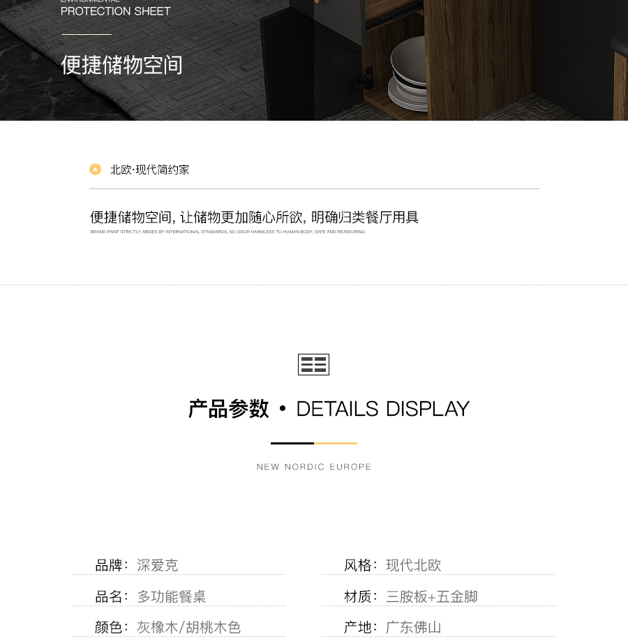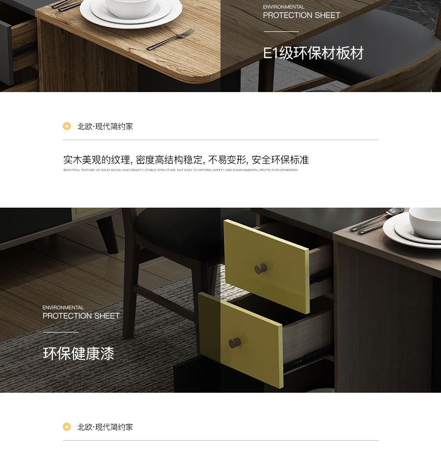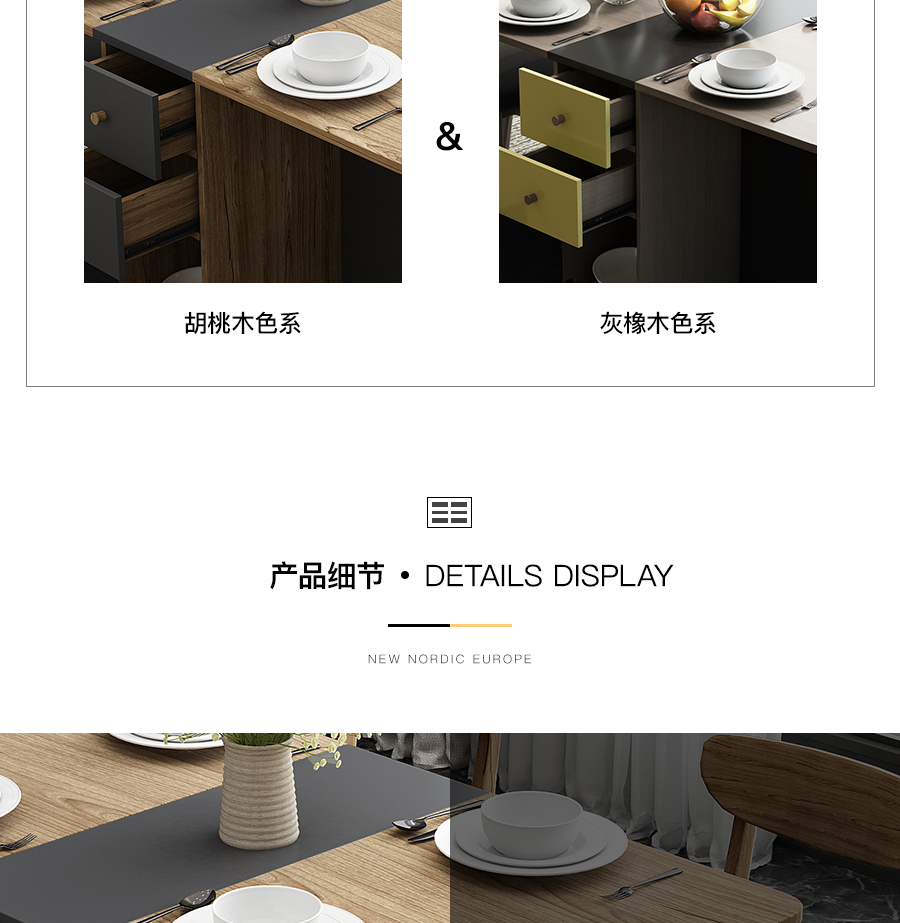 深爱克家具 多功能餐桌 现代北欧 三胺板+五金脚 灰橡木纹色 |