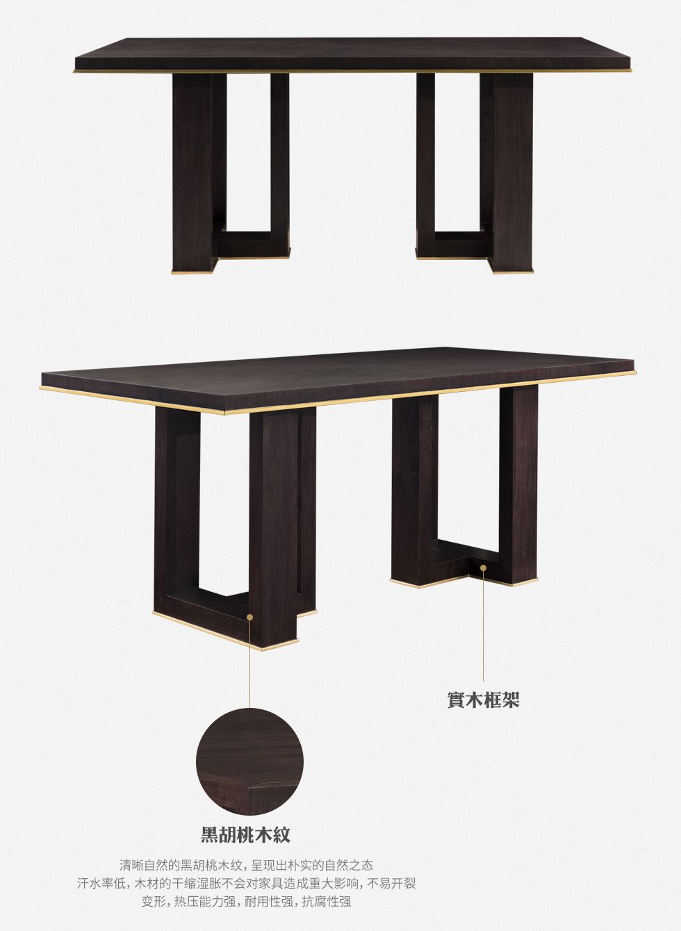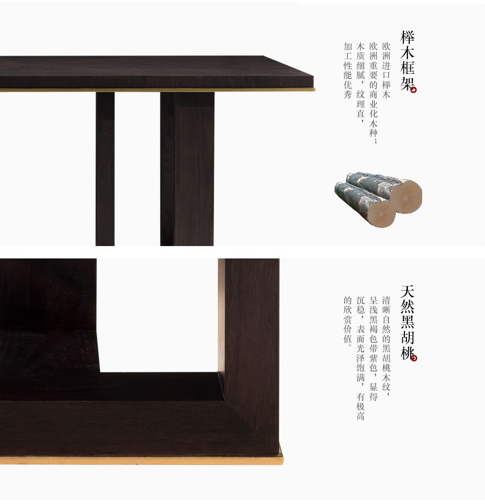 品筑生活 长餐桌 新中式 进口榉木+多层板+锌合金