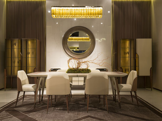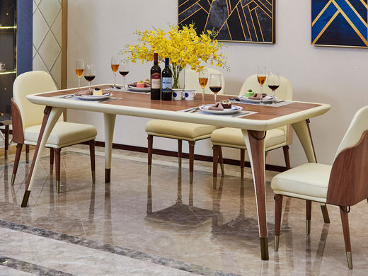 美乐 餐台 意式轻奢 岩板+拉丝钛金不锈钢+装饰皮革¥4910