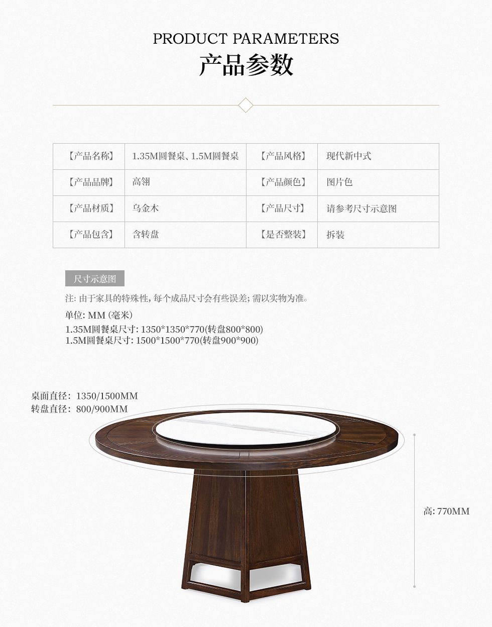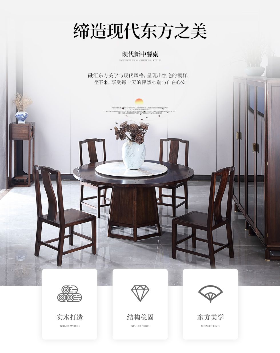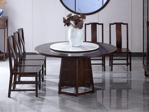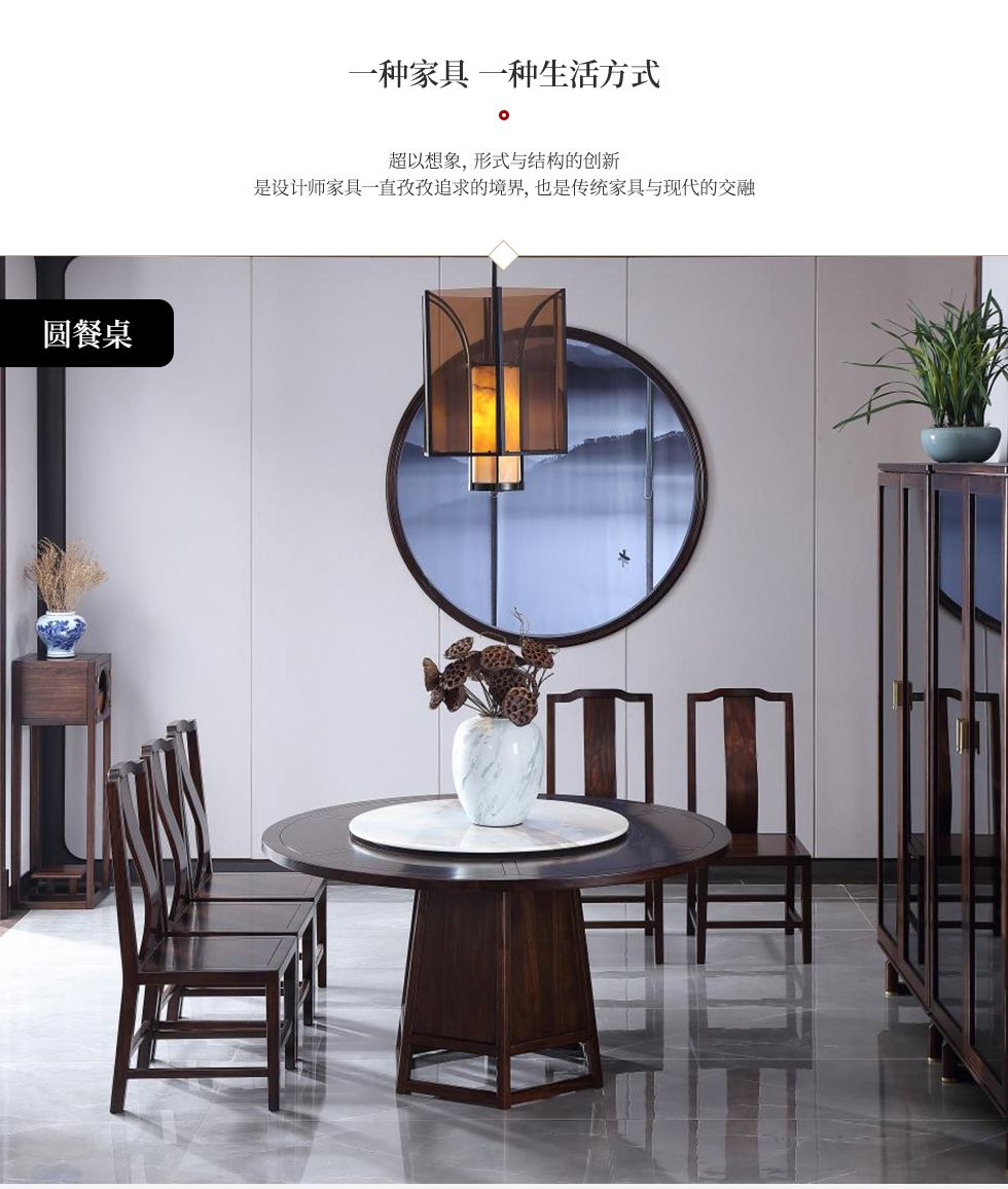 如懿 新中式 圆餐台 乌金木+多层实木+乌金木皮饰面+仿大理石¥11309