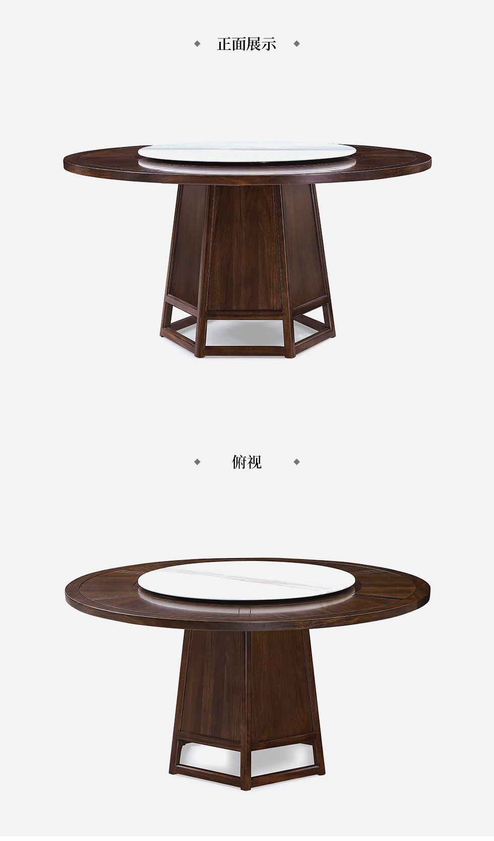 东方神韵 圆餐桌 新中式 橡胶木+大理石