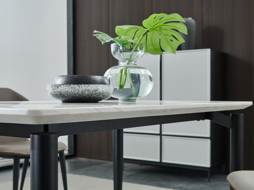 极简时代 现代极简 餐桌 大理石面+碳素钢金属烤漆框