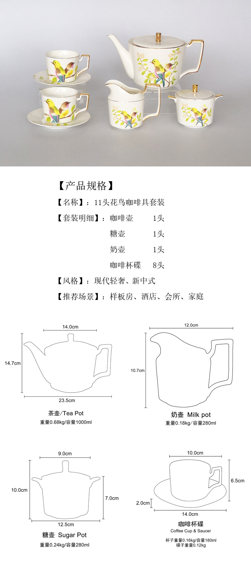 现代轻奢11头金色欧式陶瓷咖啡具套装¥777