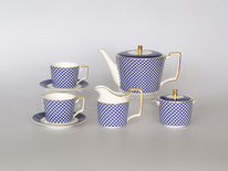 轻奢北欧11头千鸟格蓝色陶瓷咖啡具套装¥687