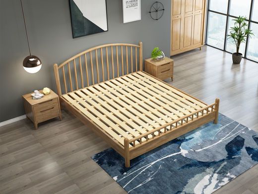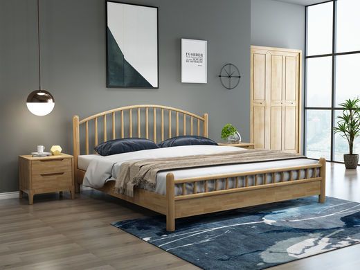 坚韧耐磨橡胶木 自然清晰木纹 日式风格双人床(原木色)¥2613