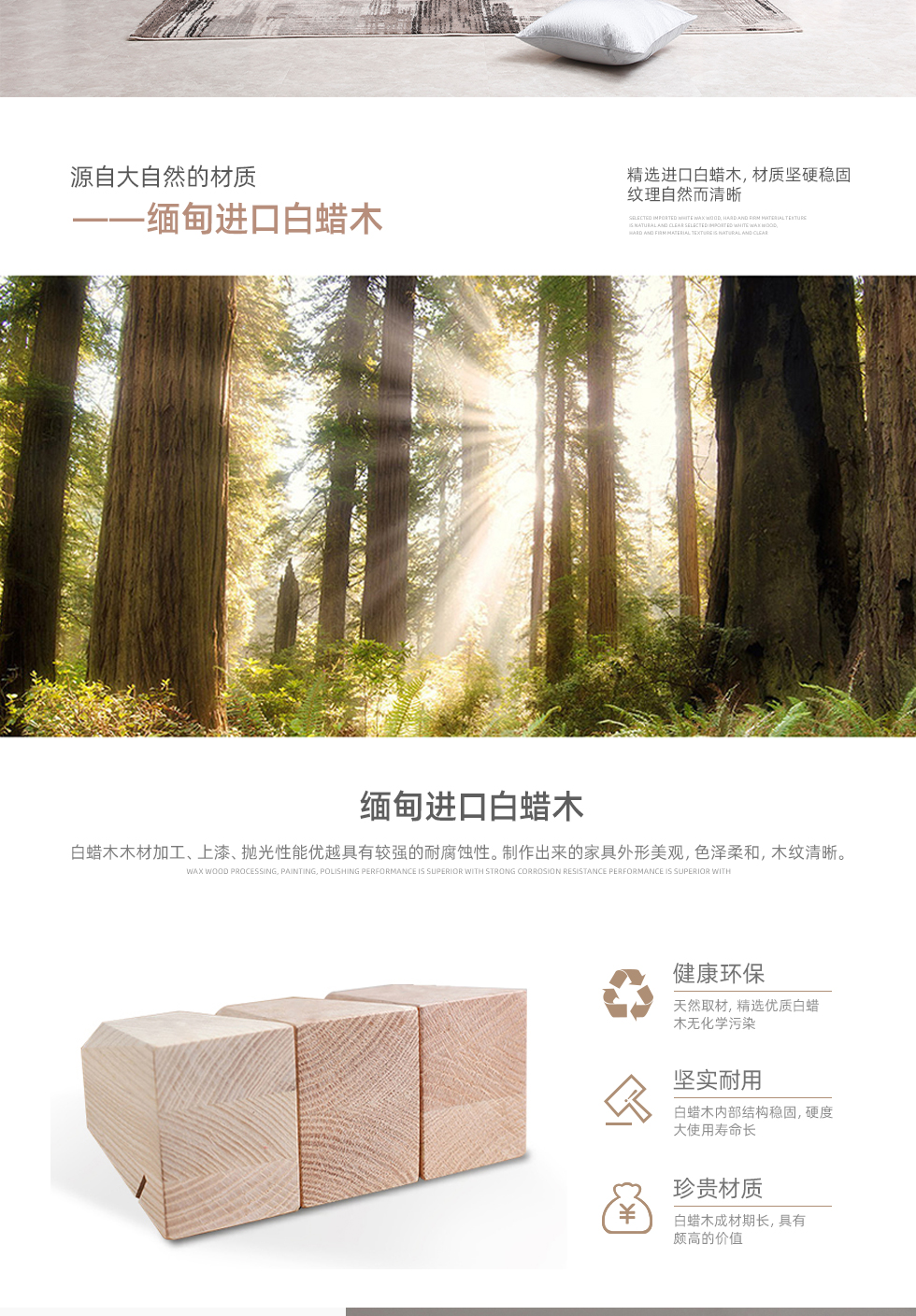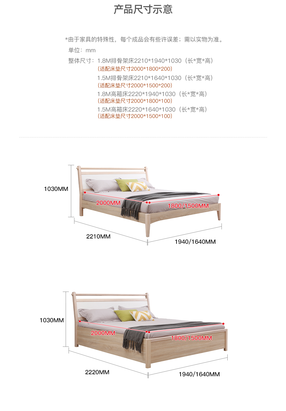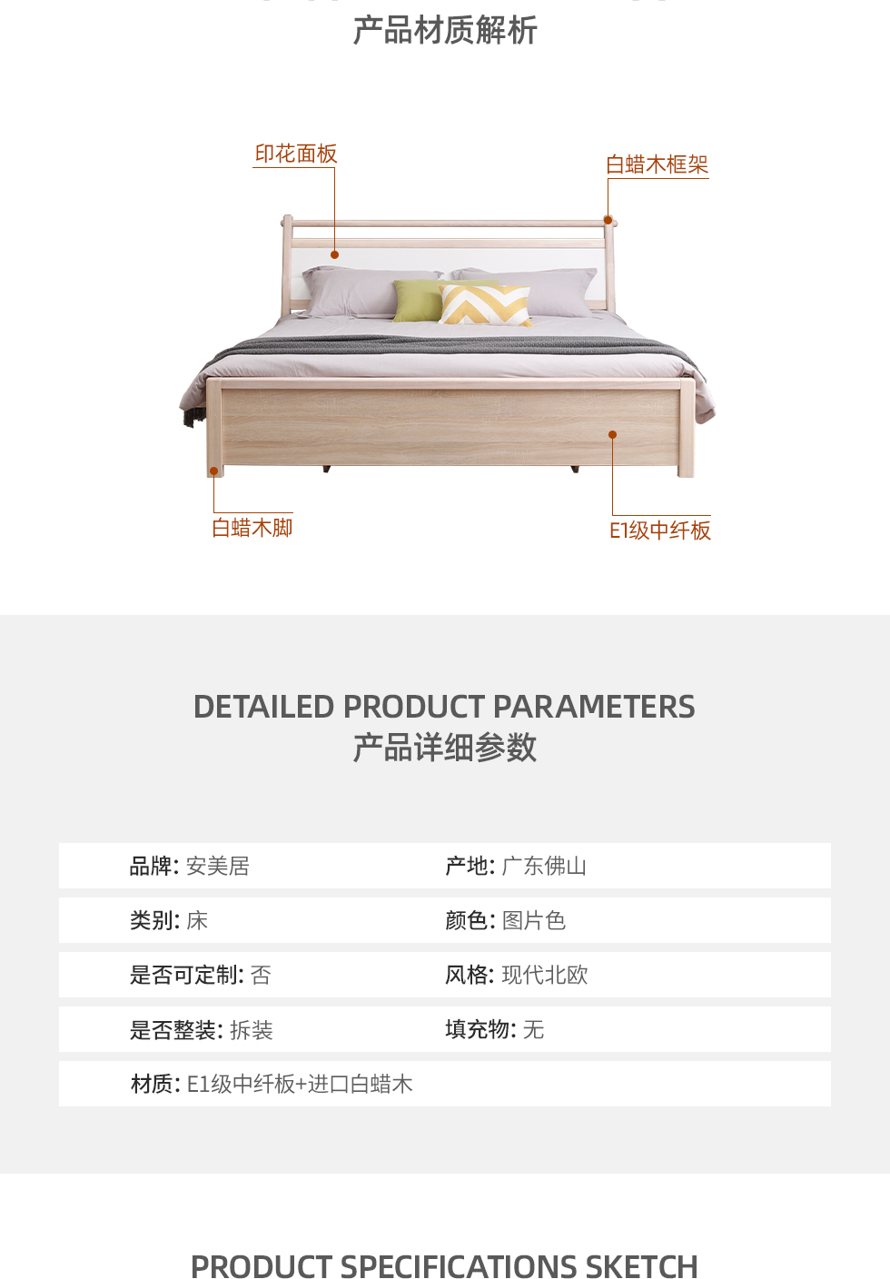 安美居 1.8m床 现代北欧 E1级中纤板+进口白蜡木 |
