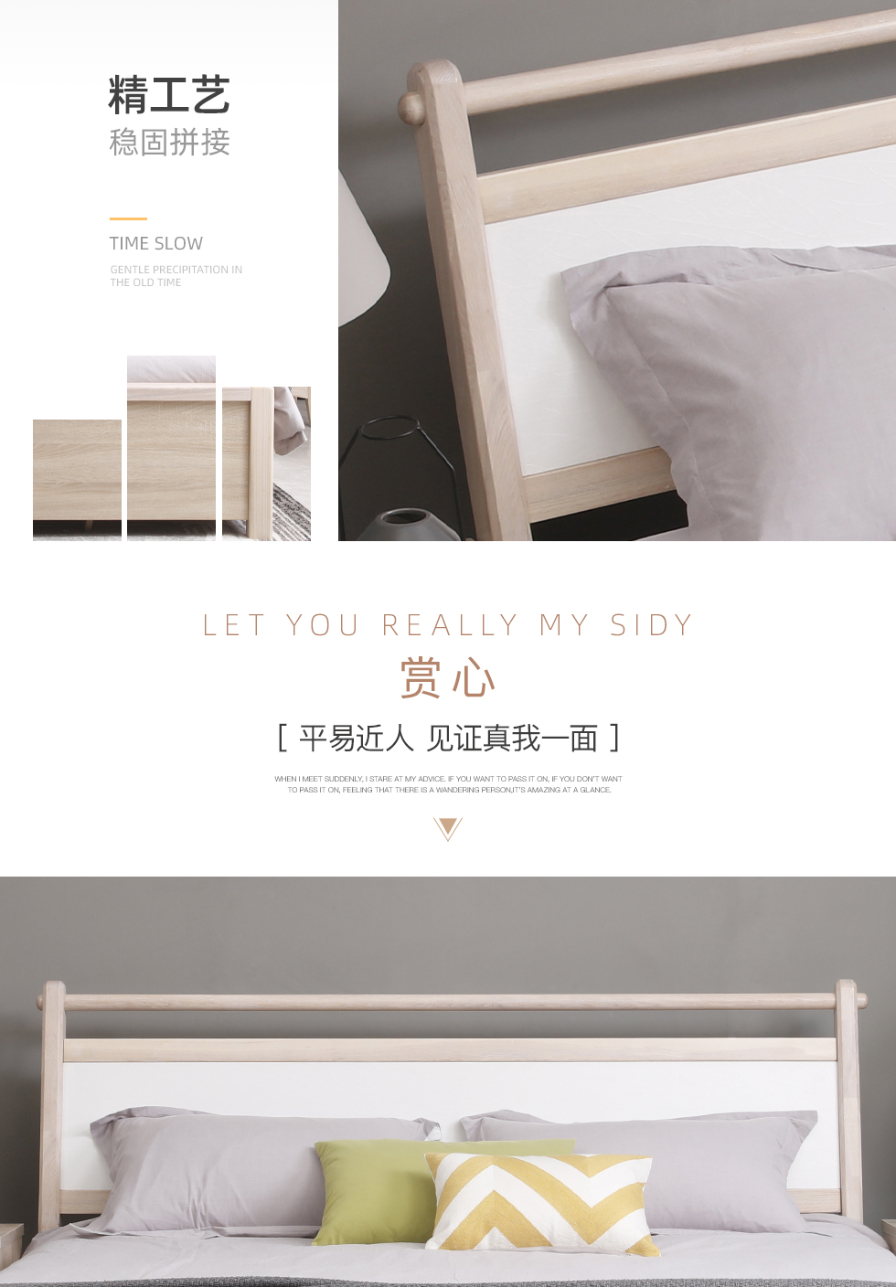 青涩 北欧 1.8米闹钟床 红橡+松木框架