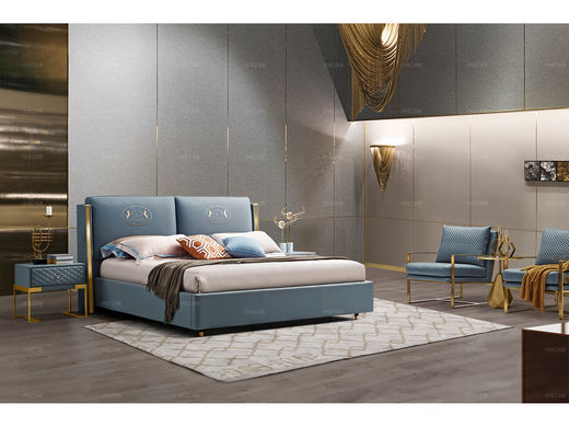 拉帕拉尼 现代轻奢 1.8m床 不锈钢+松木+进口头层皮+高回弹海棉