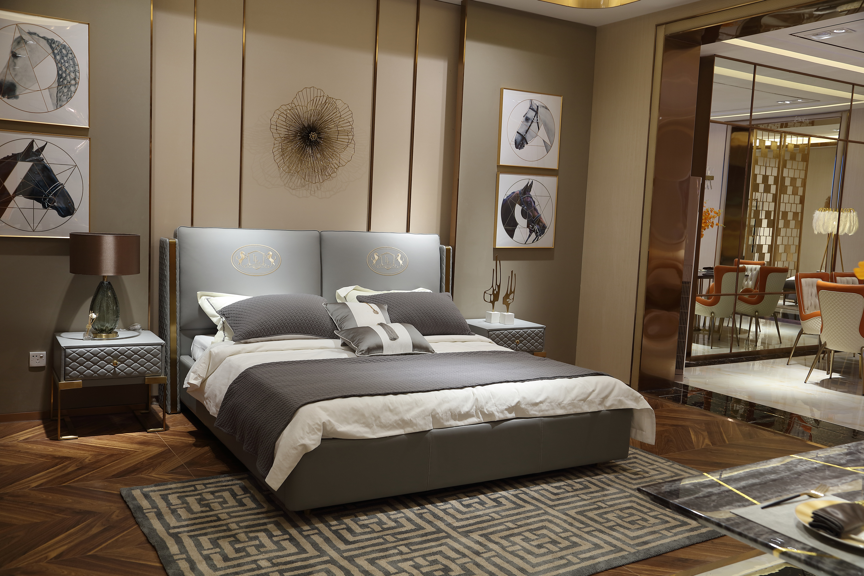 柏拉图 后现代.轻奢 1.5m床 仿真皮+实木框架+高密度海绵+不锈钢镀金