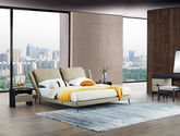 尼博家具 1.5m床 高密度板+实木+高弹海棉+优质超纤皮+不锈钢五金电镀钛金 现代风格,美式风格,设计品牌 米黄色¥6925