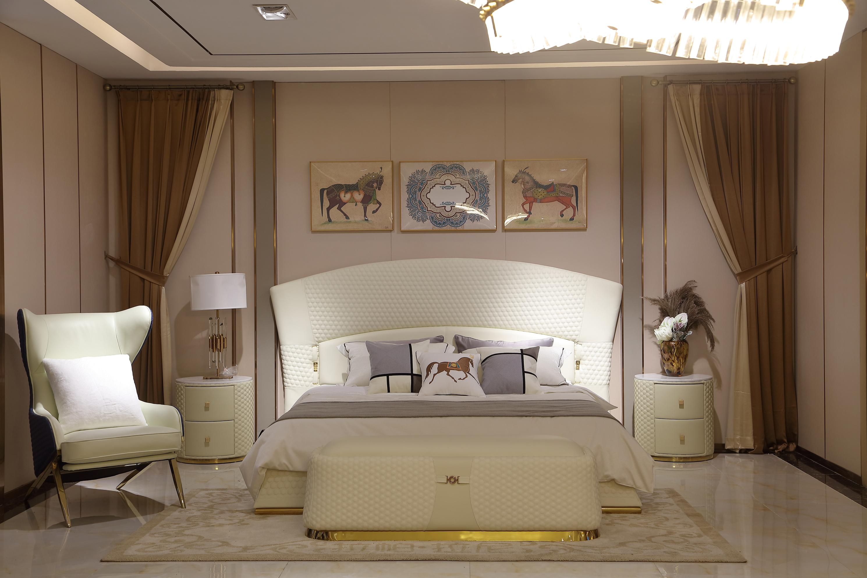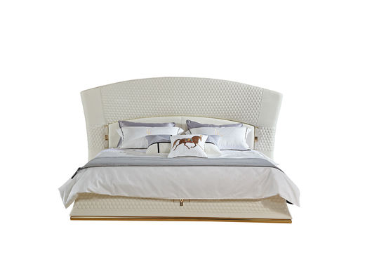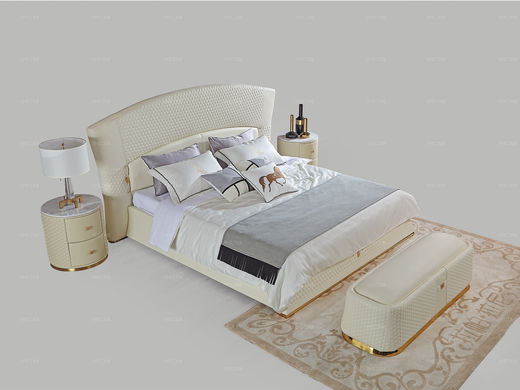 柏拉图 后现代.轻奢 1.8m床 真皮+实木+高密度海绵+不锈钢镀金