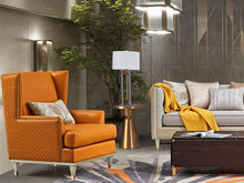 尼博家具 1.8m床 高密度板+实木+高弹海棉+优质超纤皮+不锈钢五金电镀钛金 皮号 富甲2018-22 现代风格,美式风格,设计品牌 深橘色¥4809