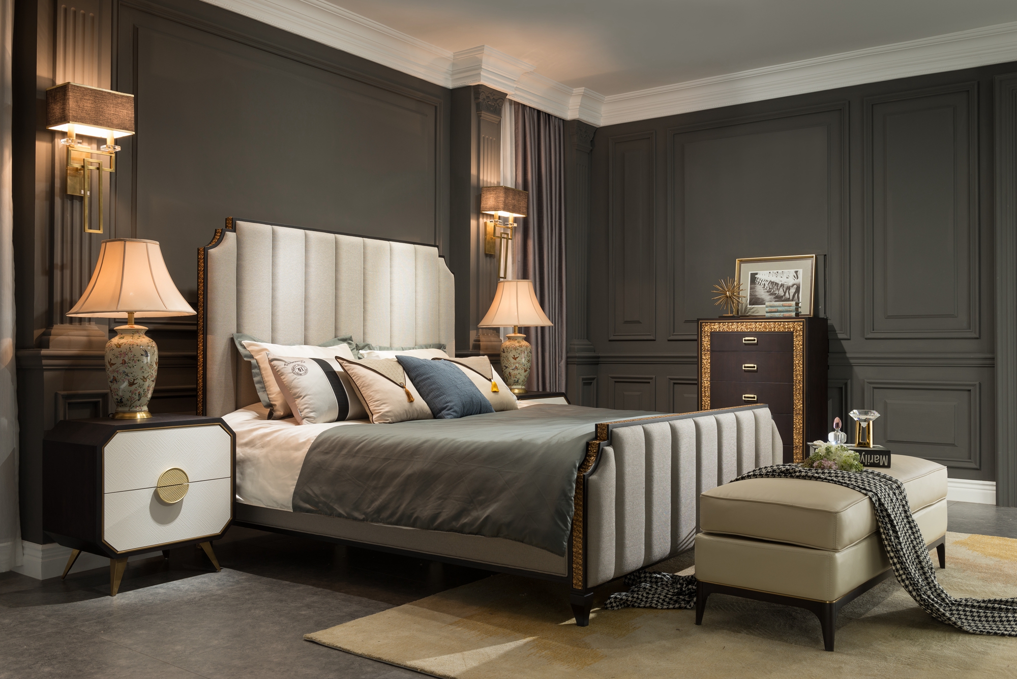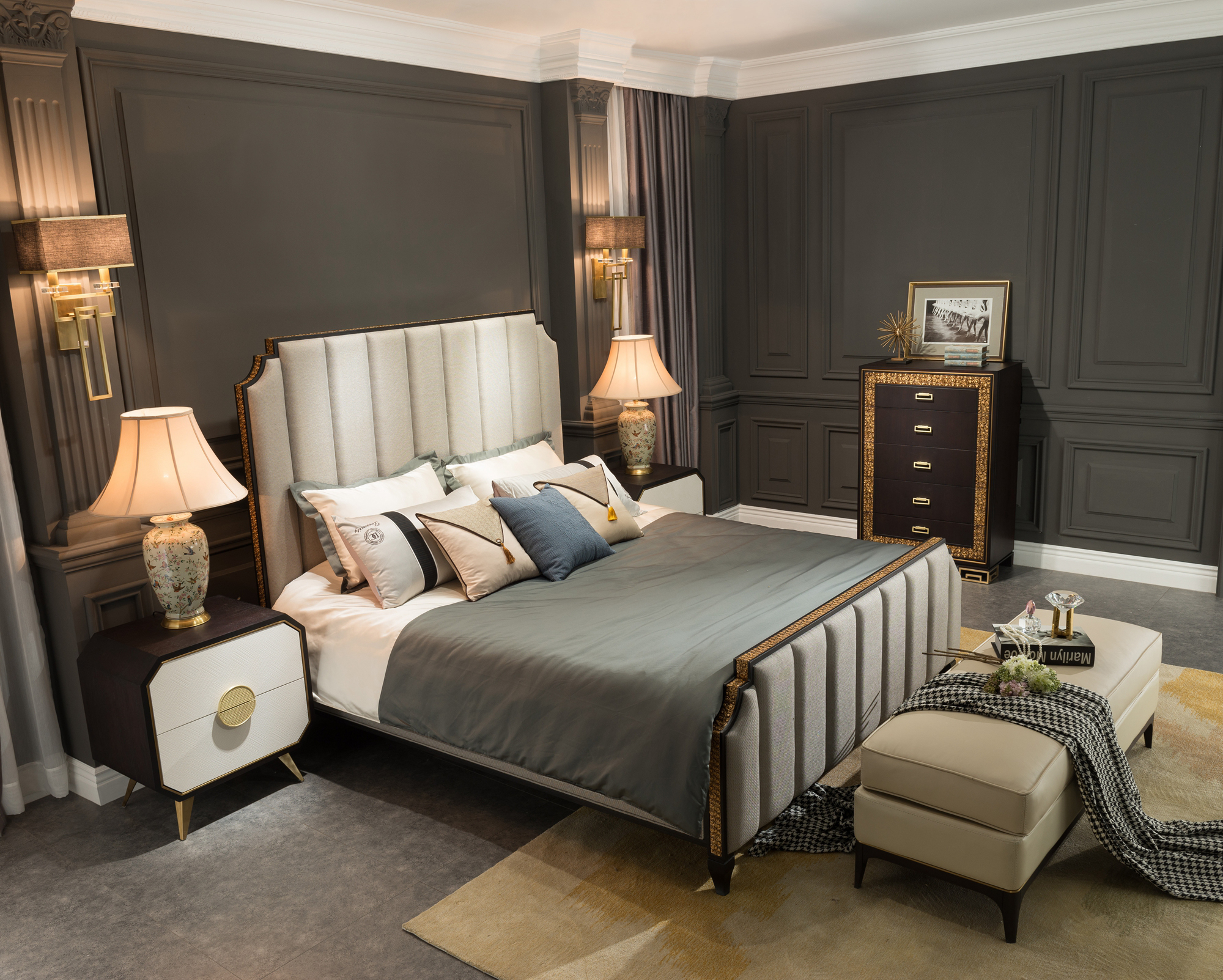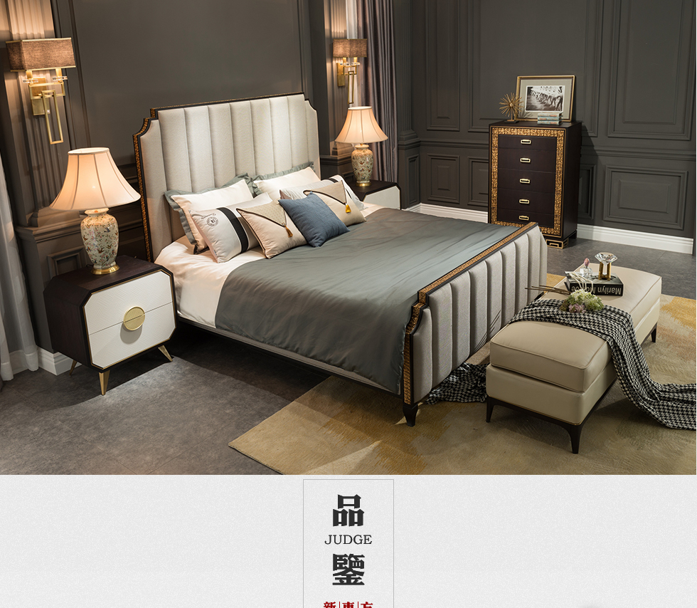 柏拉图 1.5m床 后现代.轻奢 进口环保高密度板+实木+高弹海棉+优质超纤皮+不锈钢拉丝封釉镀钛金¥4369