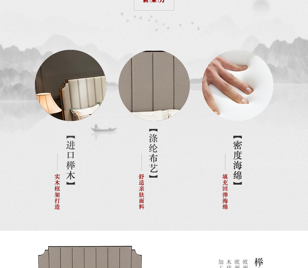 风范 1.8米床 新中式 乌金木+纳帕皮¥2186