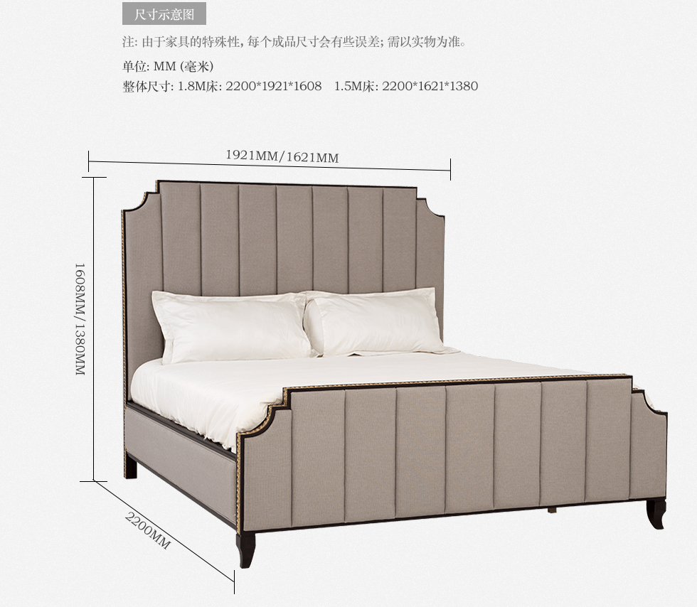 美利亚 1.5*2M(普通排骨架) 简美 E1级中纤板+橡胶木+仿油腊皮靠包¥4648