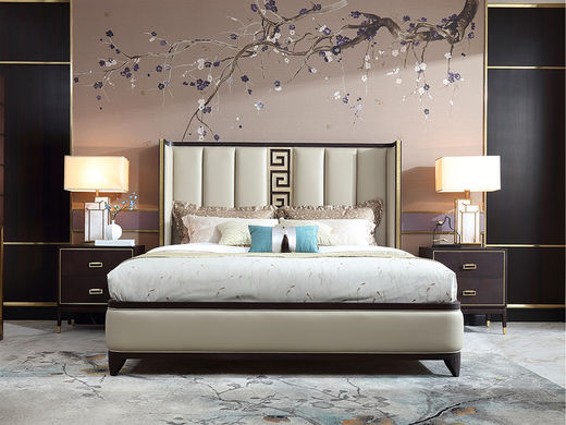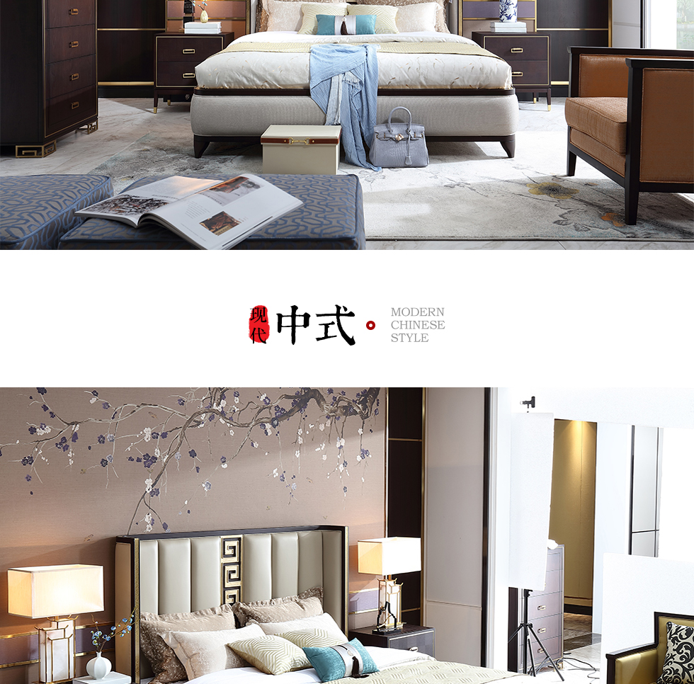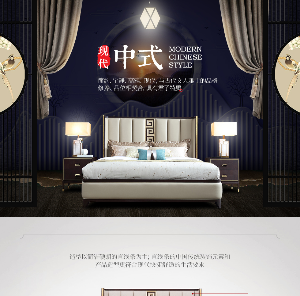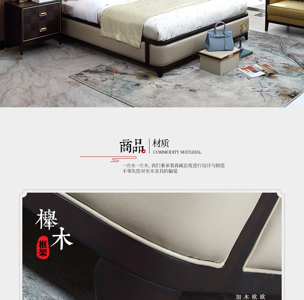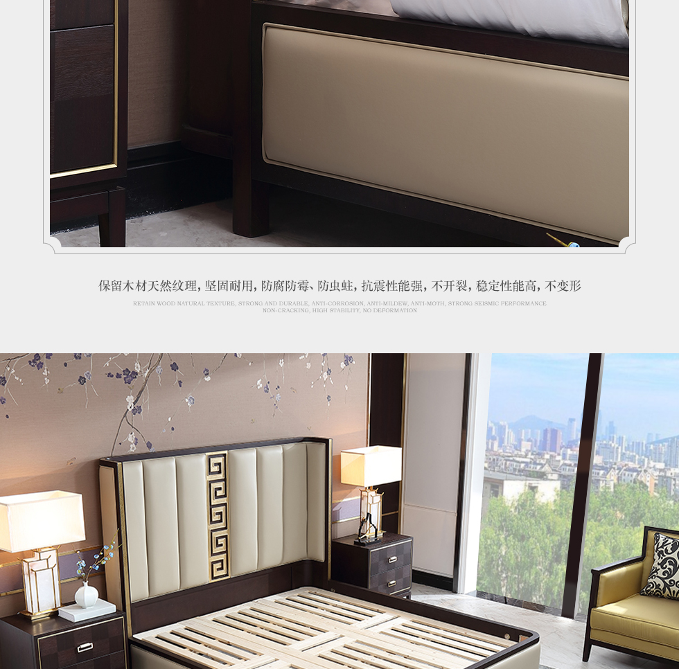 悠然 新中式 1.8米床 橡胶木+超纤皮¥4344