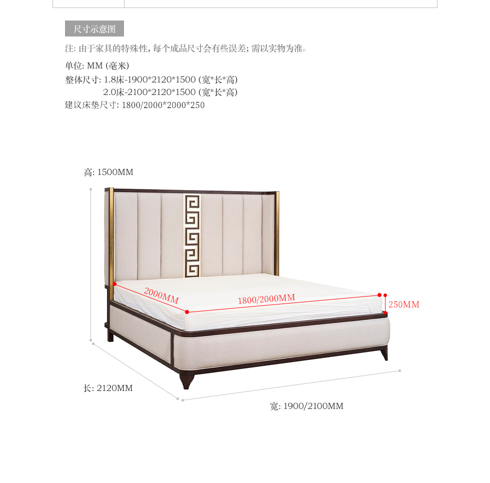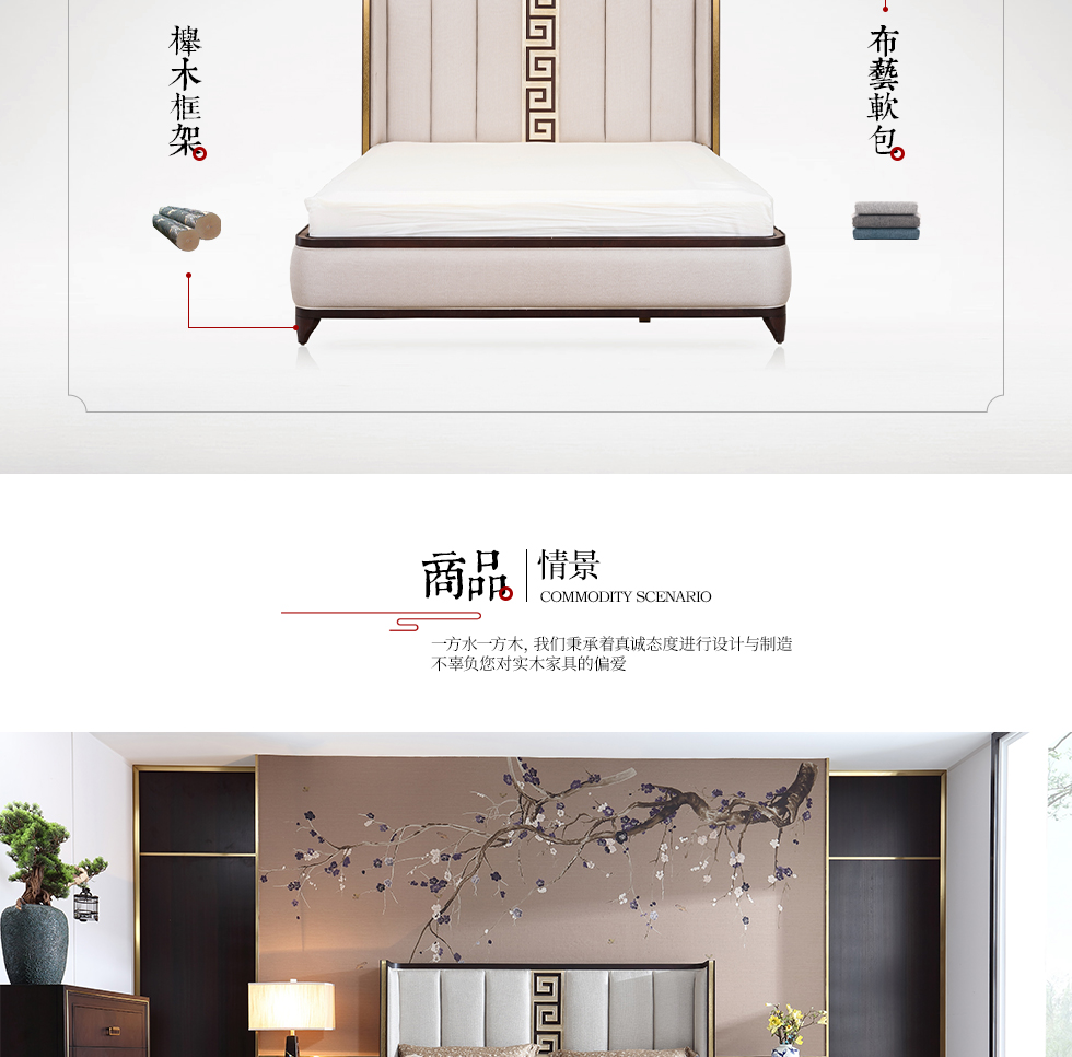 大至 新中式 1.8m床 榉木+杂木+布 |