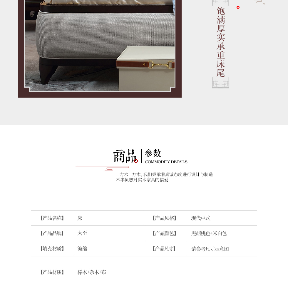 悠然 新中式 1.8米床 胡桃木+多层板| 商品详情 | 规格参数 | 已售(106) | 评价(0) | 购买咨询() | 产品实拍图 |