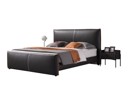 简优家具 1.8m床 极简 接触面头层黄牛皮+桉木/夹板结合内架+不锈钢黑钛脚¥7497