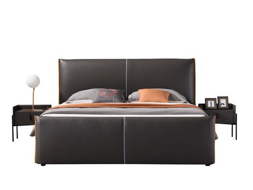 嘉诺 极简 1.8米床 1.进口头层黄牛皮 2.床头采用四面抛光松木框架 3.床侧采用E1级4.实木多层板 5.海绵采用高密度高回弹海绵 6.加强型排骨架 7.定制黑色喷砂五金配件