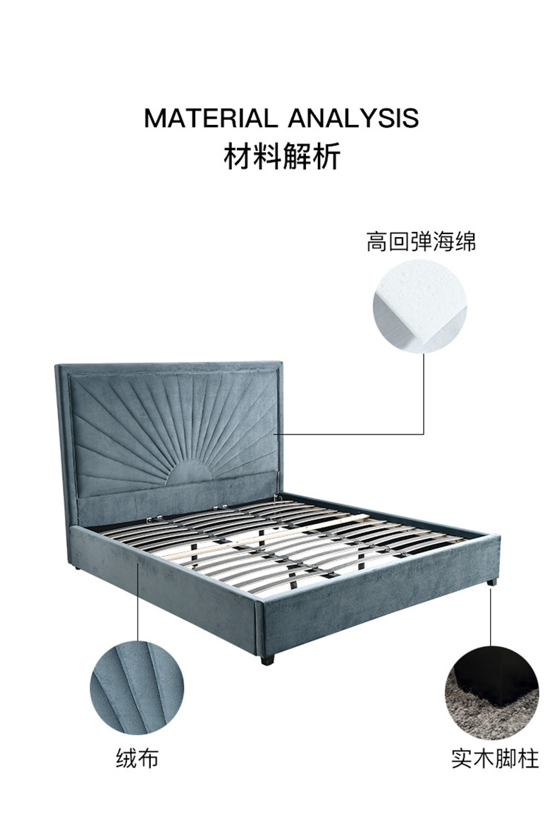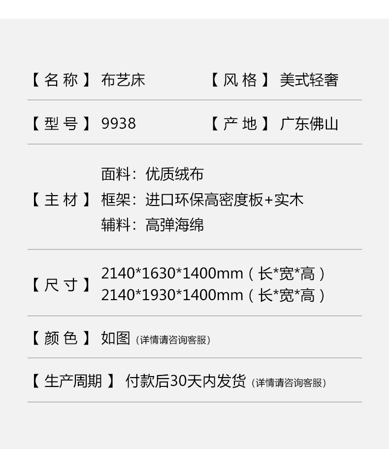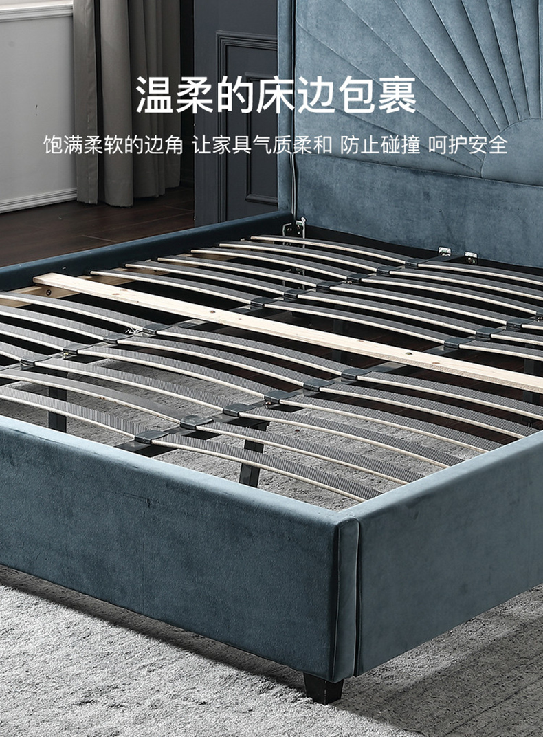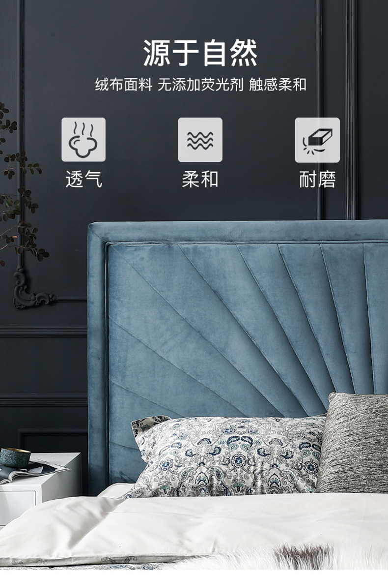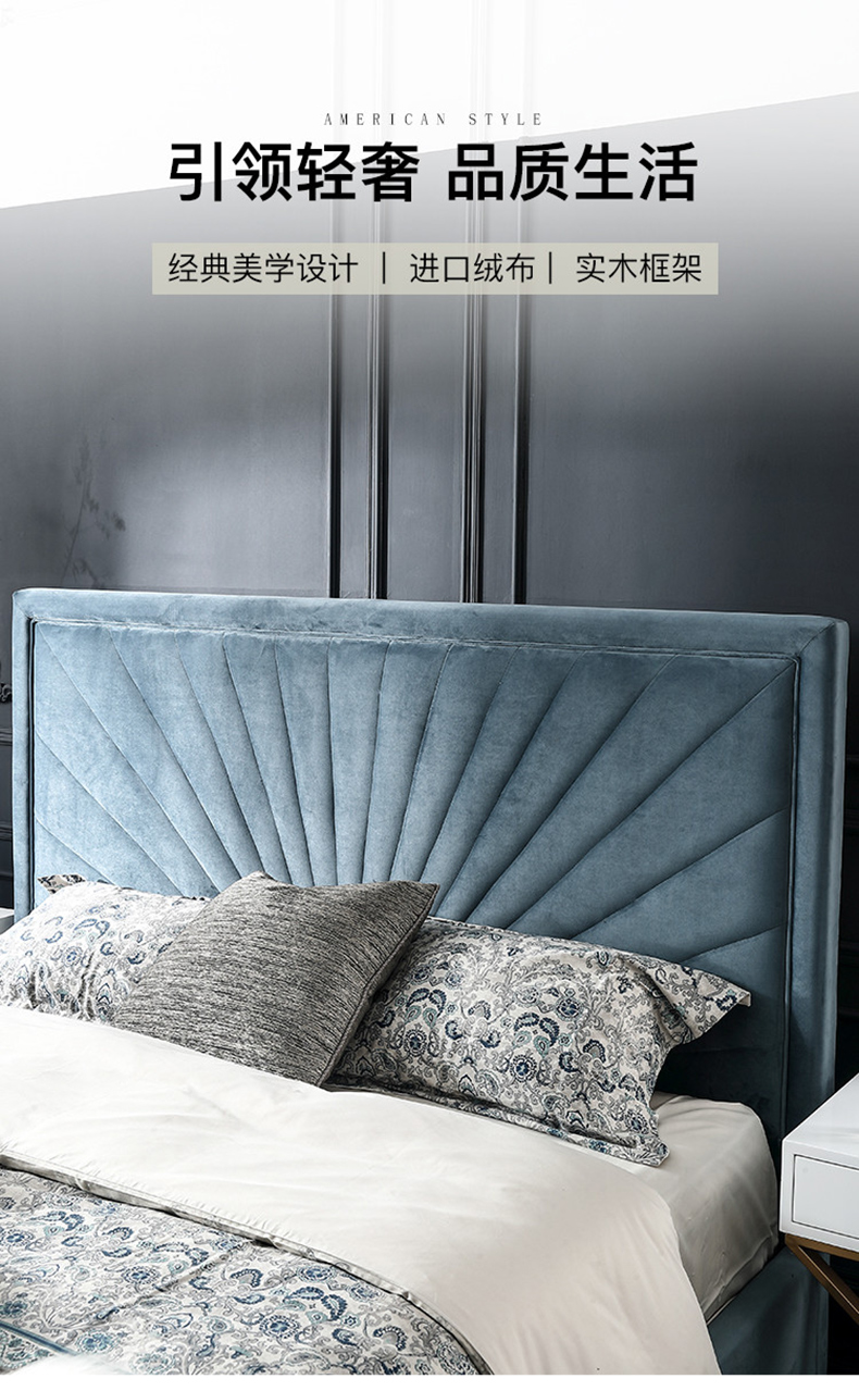 拾光园 1.5m床 美式轻奢 进口环保高密度板+实木+高弹海绵+优质绒布 |