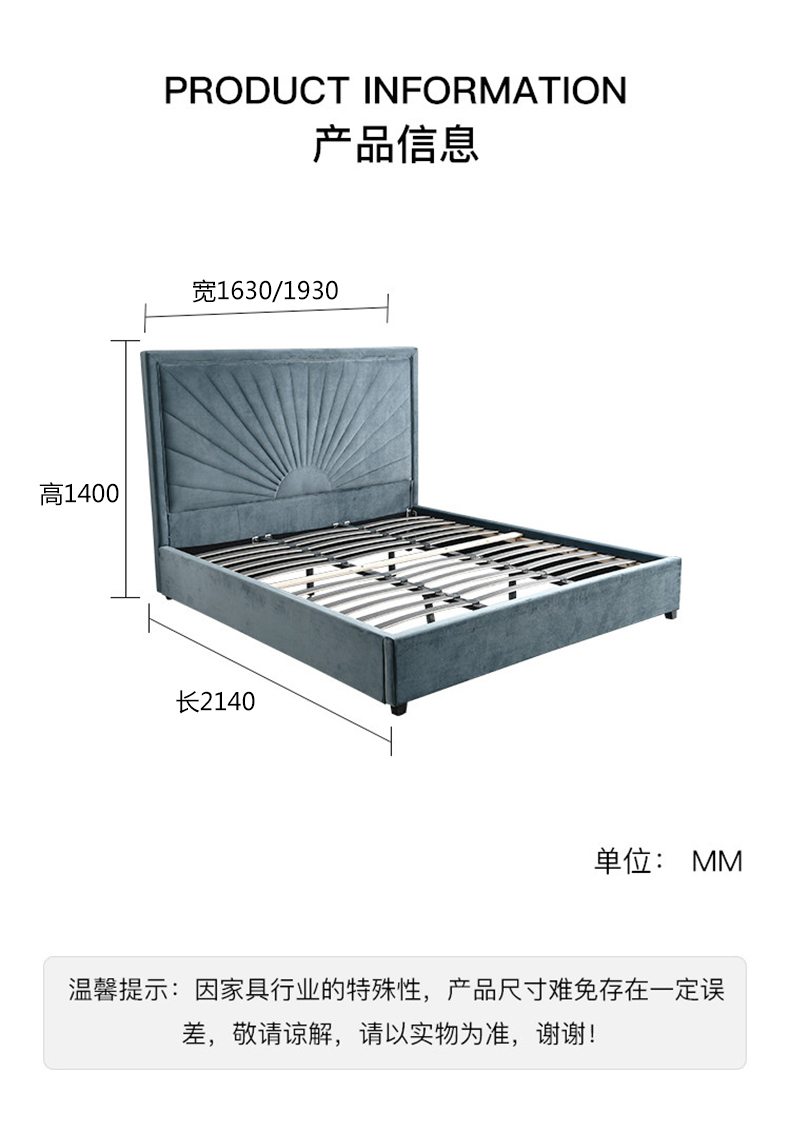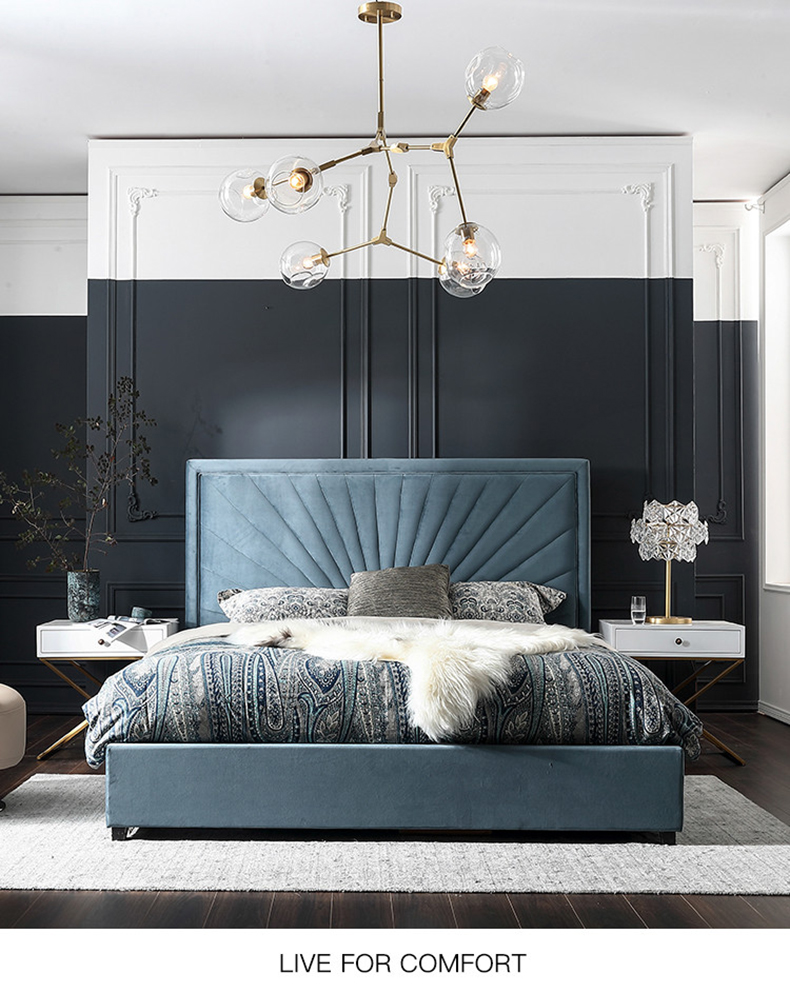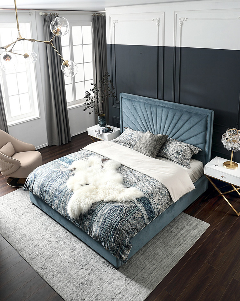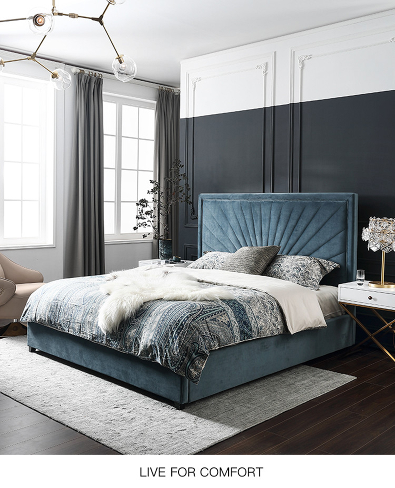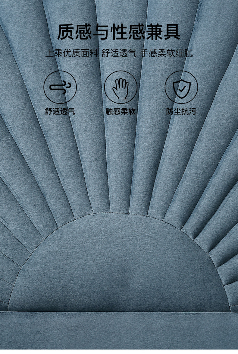 拾光园 1.5m床 美式轻奢 进口环保高密度板+实木+高弹海绵+优质绒布 |