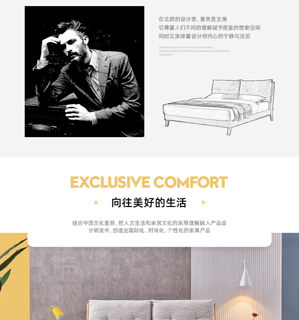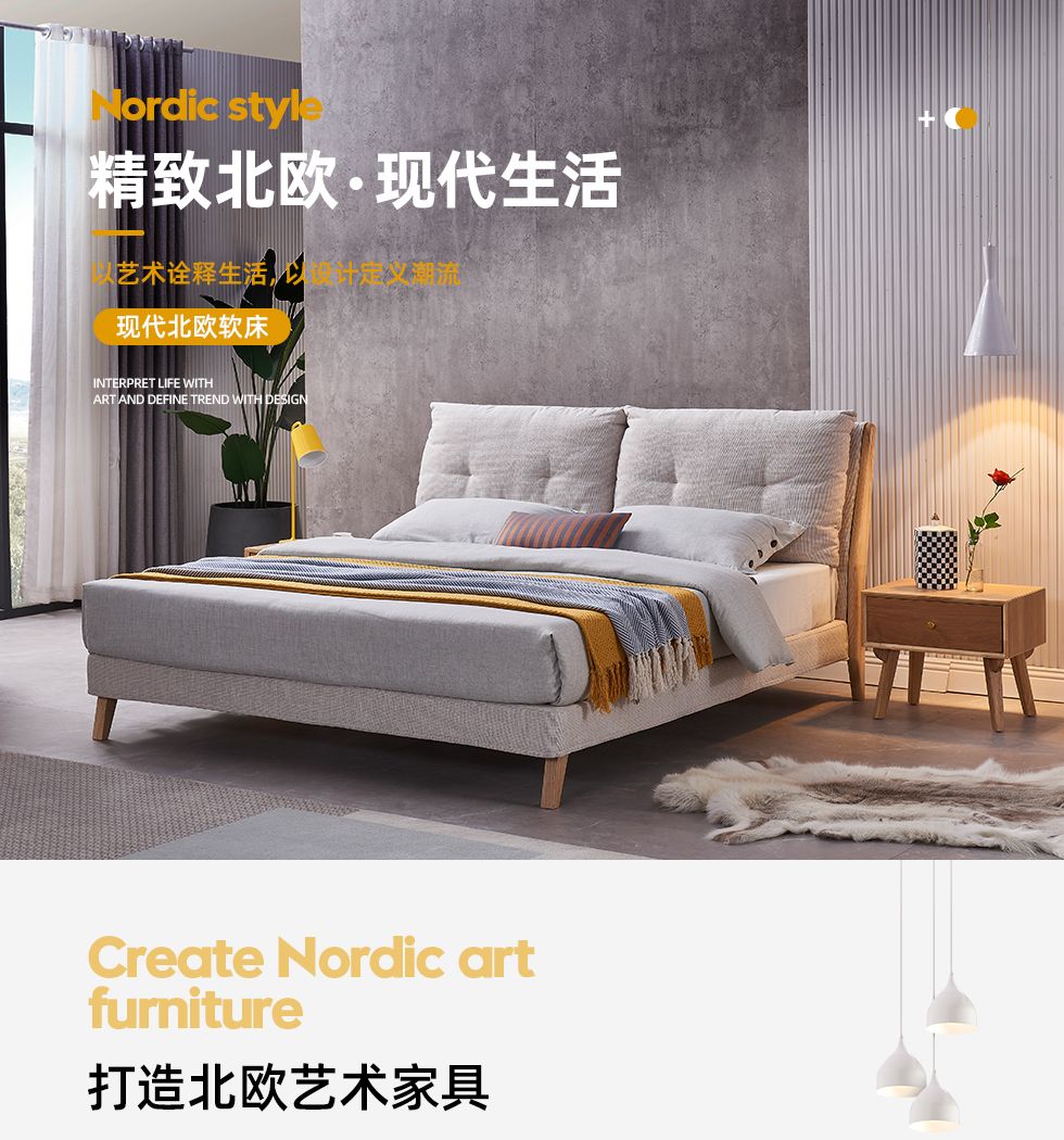 悠歌乐家 北欧 1.5米床 橡胶木+布¥3401