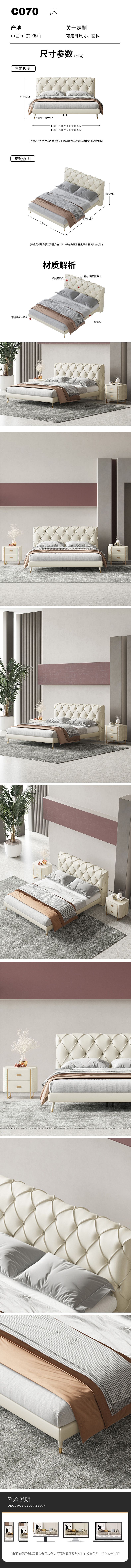 易间 1.8米床 现代·极简 黄牛皮+碳素钢+实木排骨架