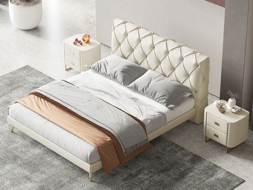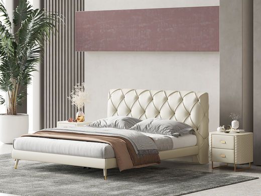 巴洛克 1.5m床 极简 高密度板+实木+床头接触面为真皮非接触面为仿皮+五金脚