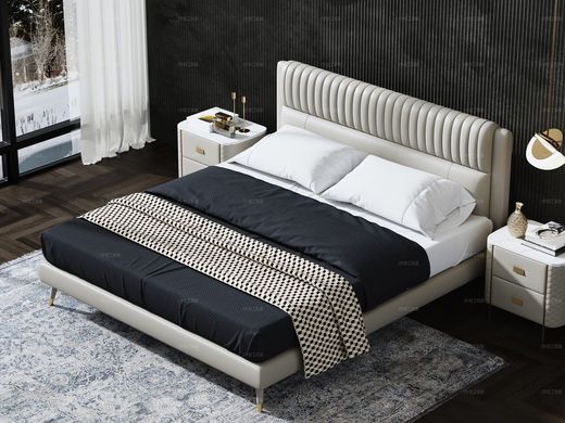 易间 1.8米床 现代·极简 黄牛皮+碳素钢+实木排骨架
