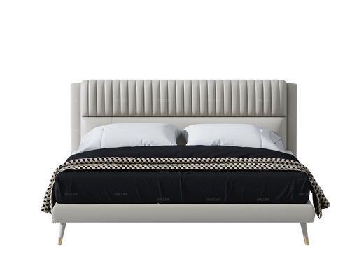 巴洛克 1.5m床 极简 高密度板+实木+床头接触面为真皮非接触面为仿皮+五金脚