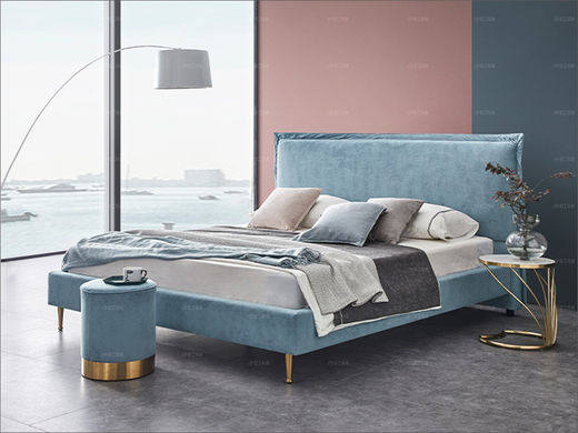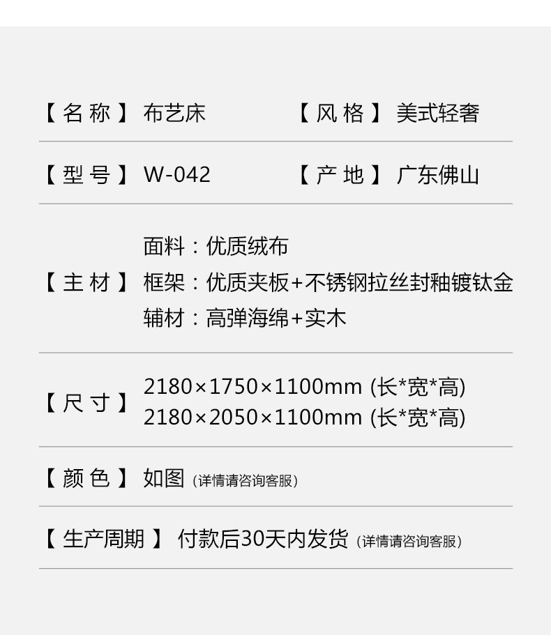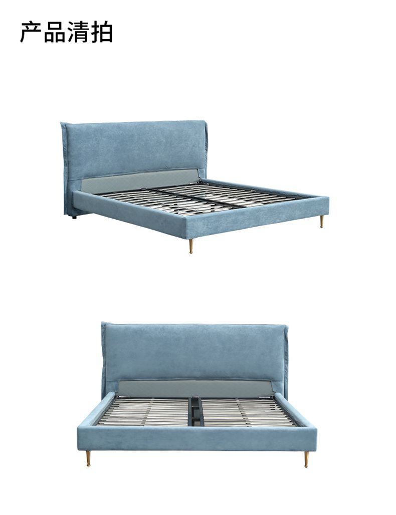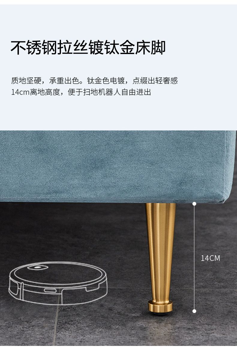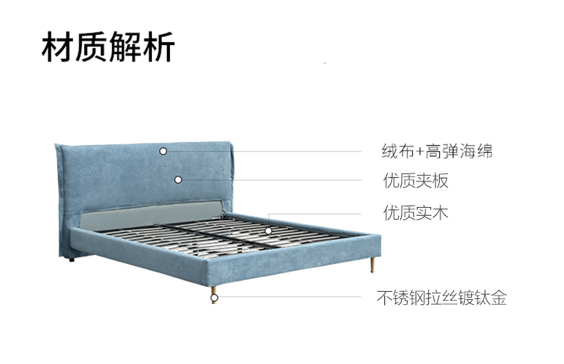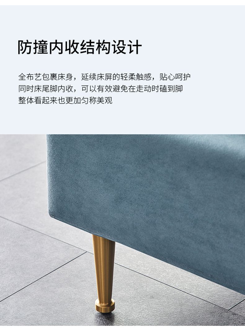 拾光园 轻奢 1.8m床 优质夹板+实木+高弹海棉+优质绒布+不锈钢拉丝封釉镀钛金 |