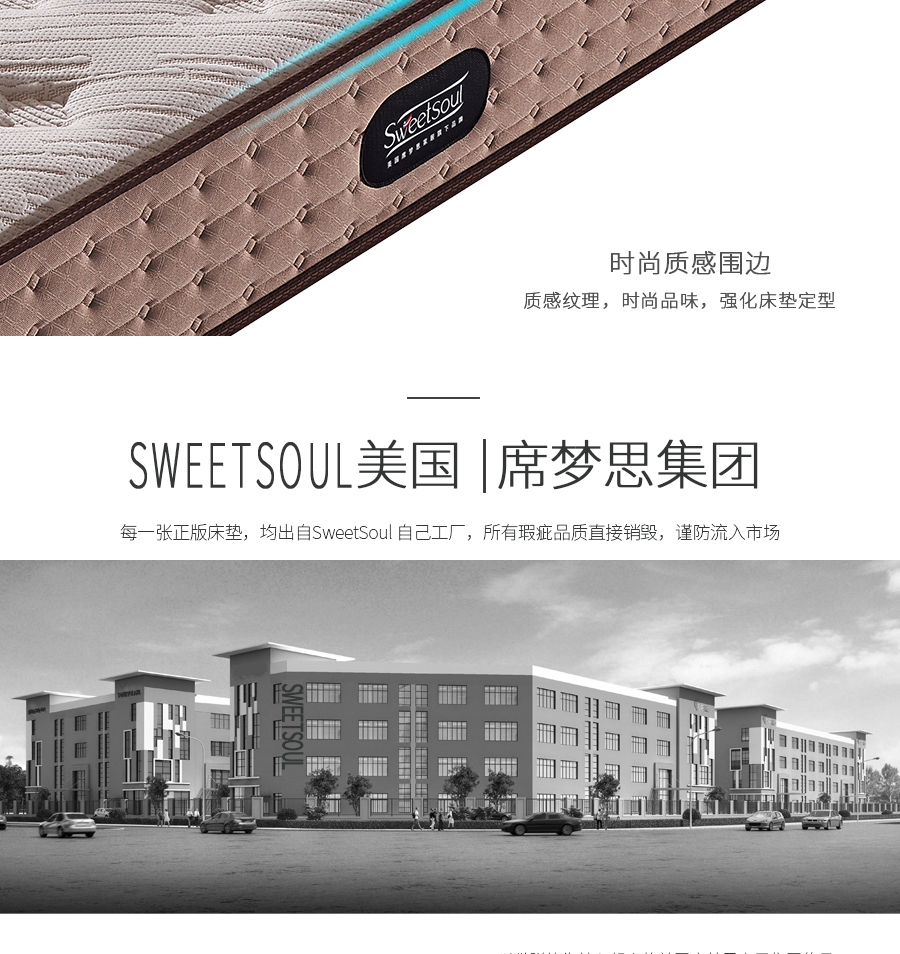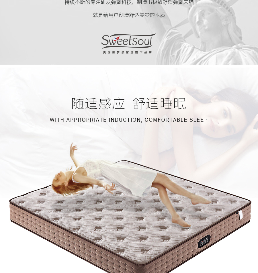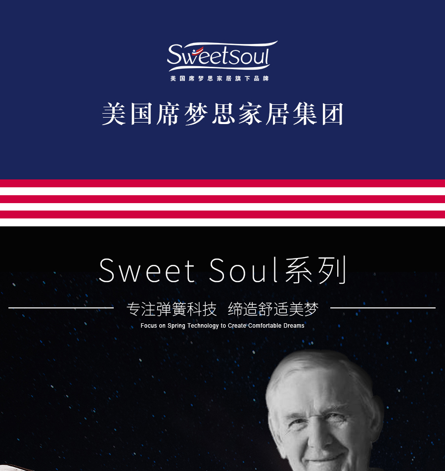 美国席梦思 Sweetsoul 1.8m床垫 环保棉+舒柔海绵+超柔海绵 五区独立袋装弹簧¥23860