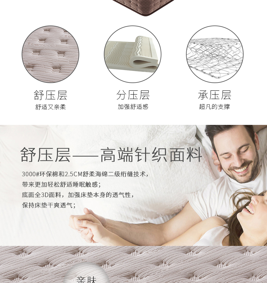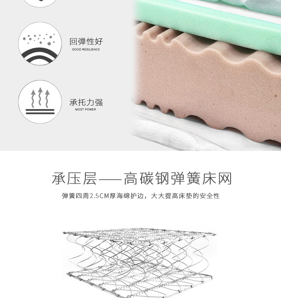 喜临门 瑞亚 现代 软体类 1.5m床垫 抗菌防螨面料+海绵+3维无胶棉+3D环保椰棕 白色+灰色¥2037
