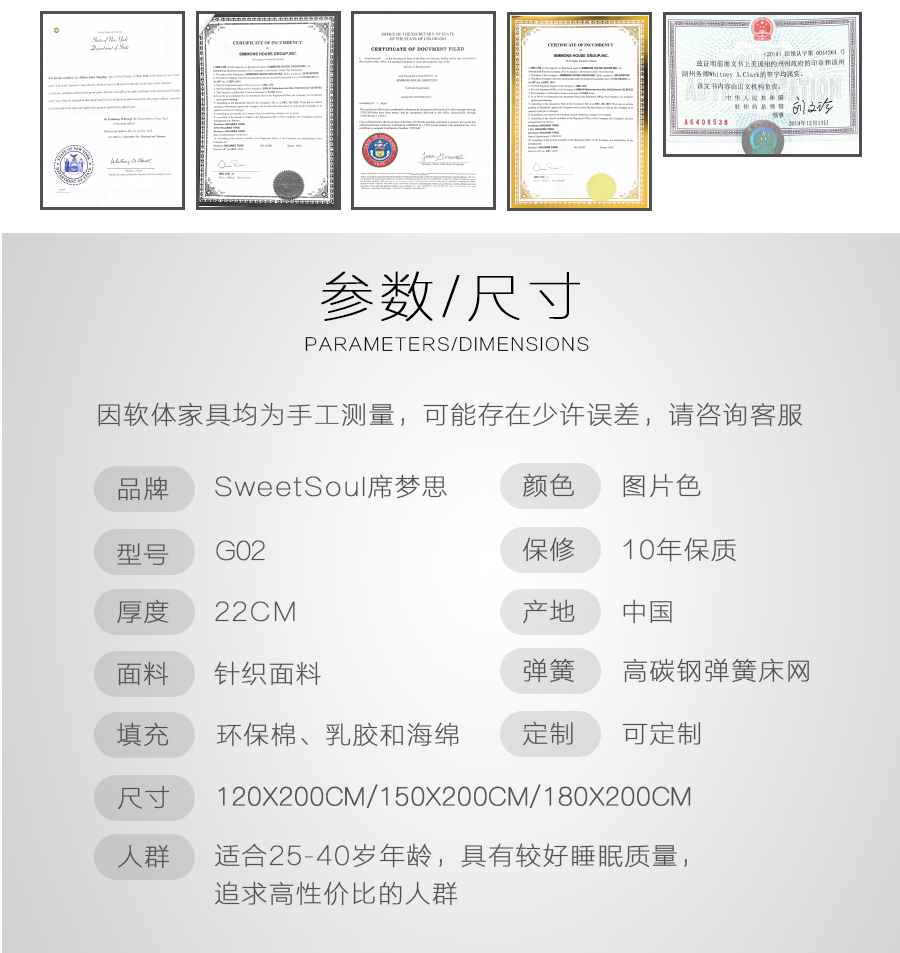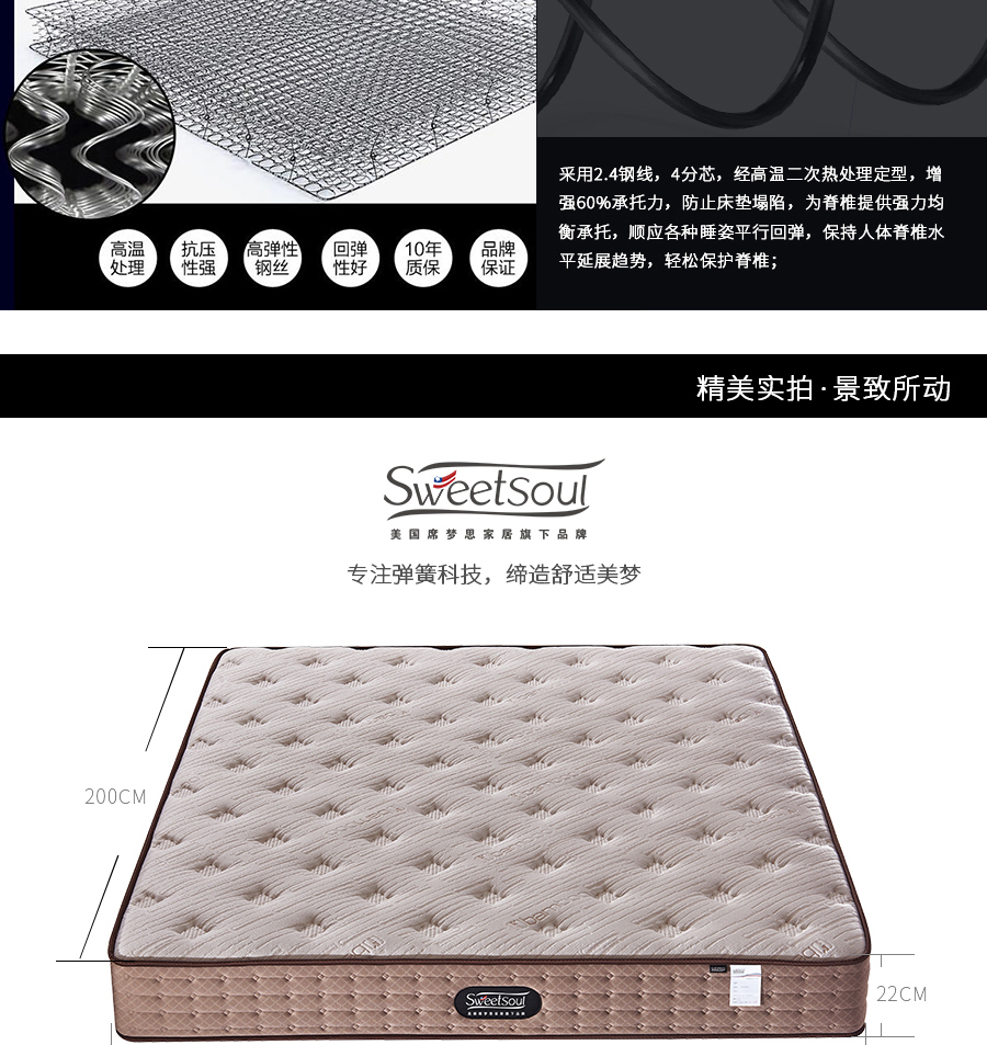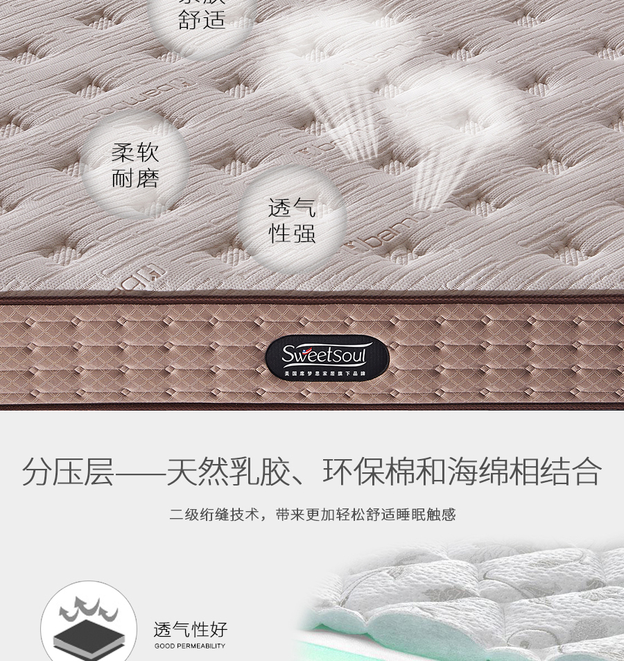 美国席梦思 Sweetsoul 1.8m床垫 针织面料 天然乳胶+环保棉+舒柔海绵 高碳钢连锁弹簧| 商品详情 | 规格参数 | 已售(652) | 评价(0) | 购买咨询() | 产品实拍图 |
