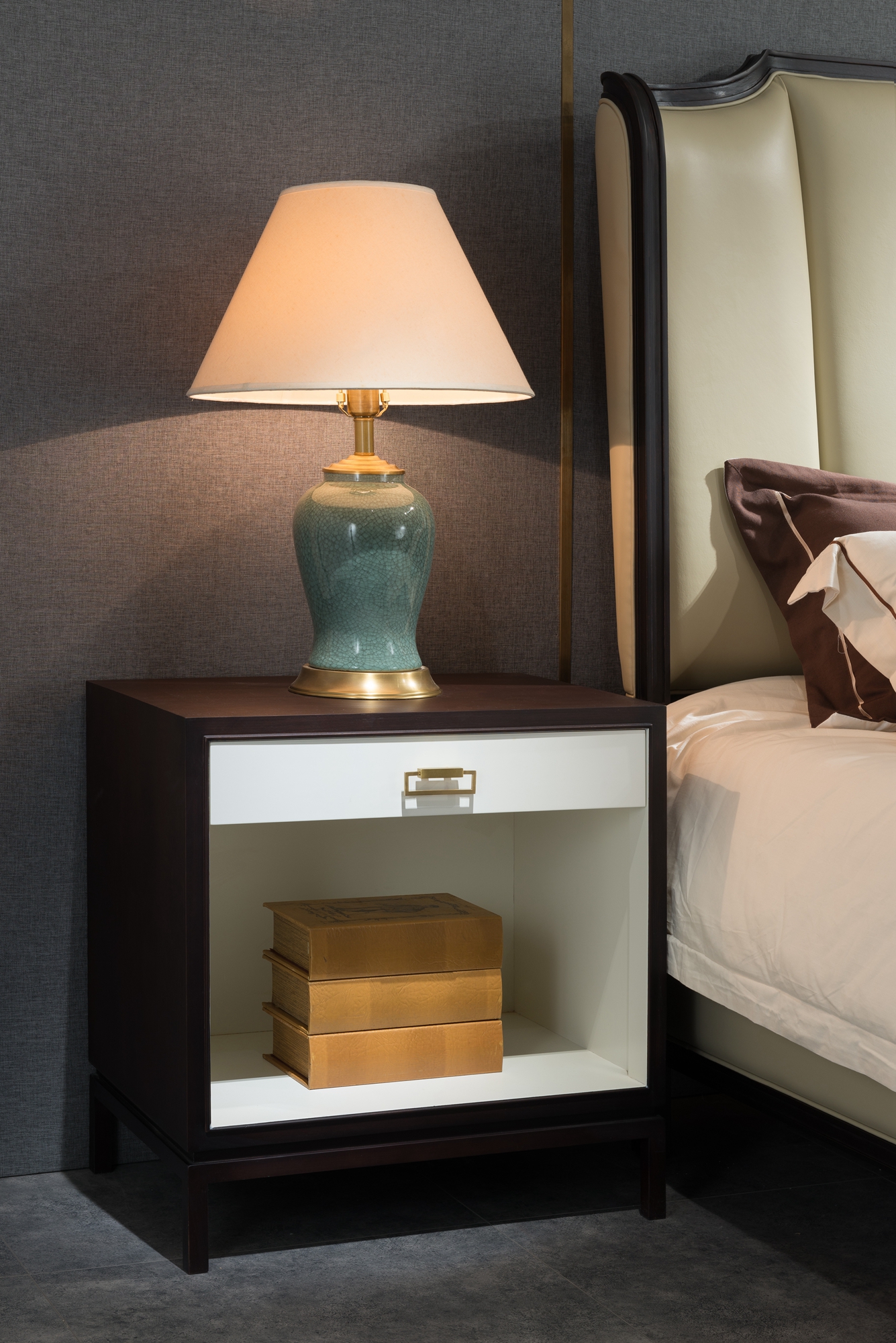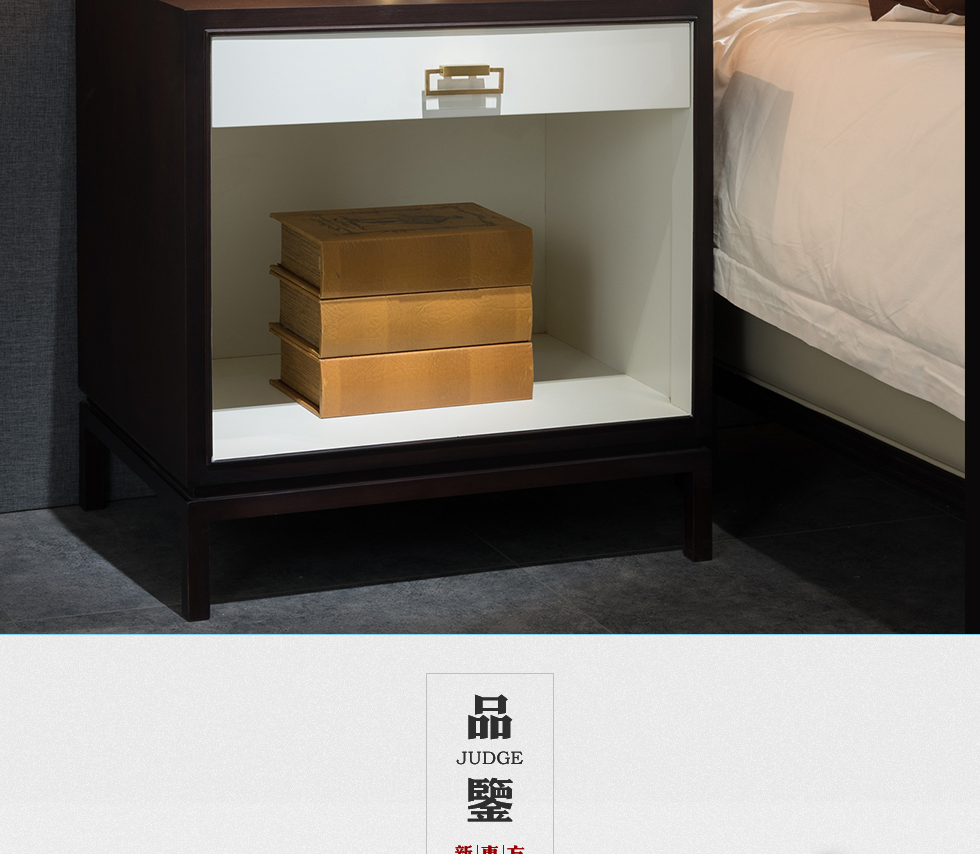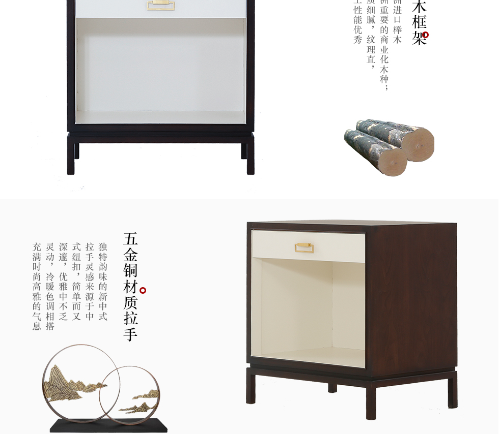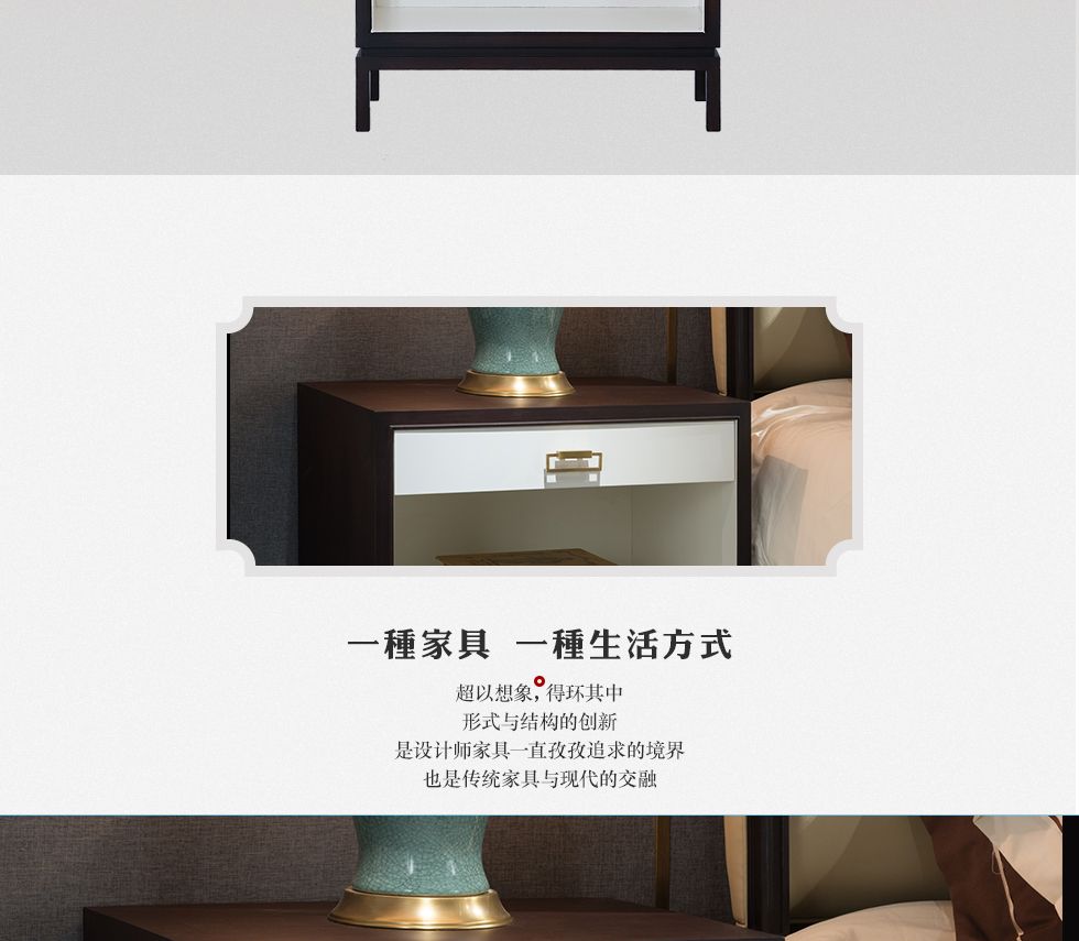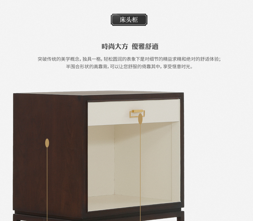 品筑生活 床头柜 新中式 纤维板+多层板+不锈钢+锌合金+铜材质