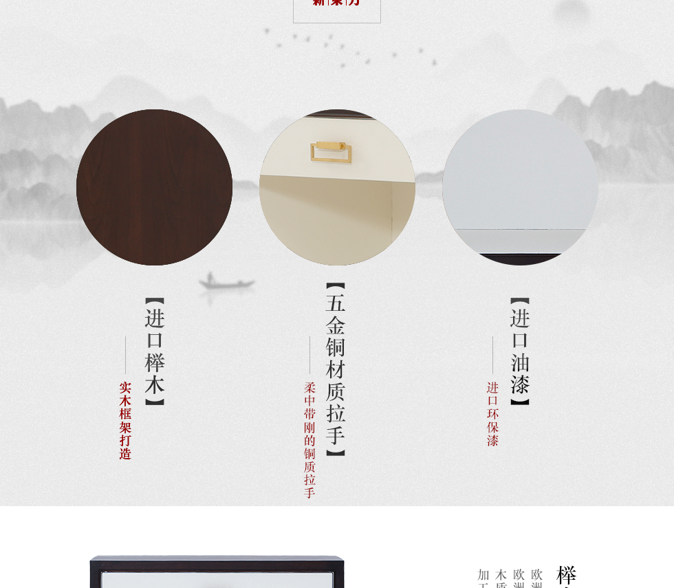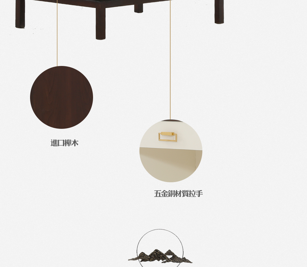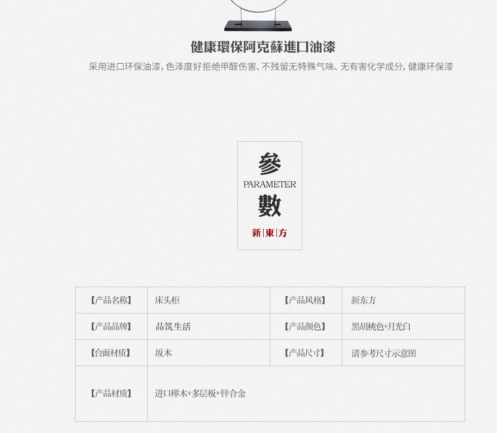 品筑生活 床头柜 新中式 进口榉木+多层板+锌合金