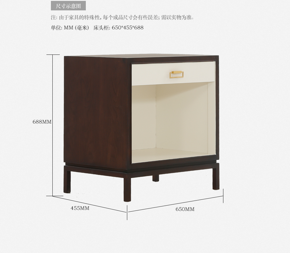 品筑生活 床头柜 新中式 进口榉木+多层板+不锈钢+锌合金