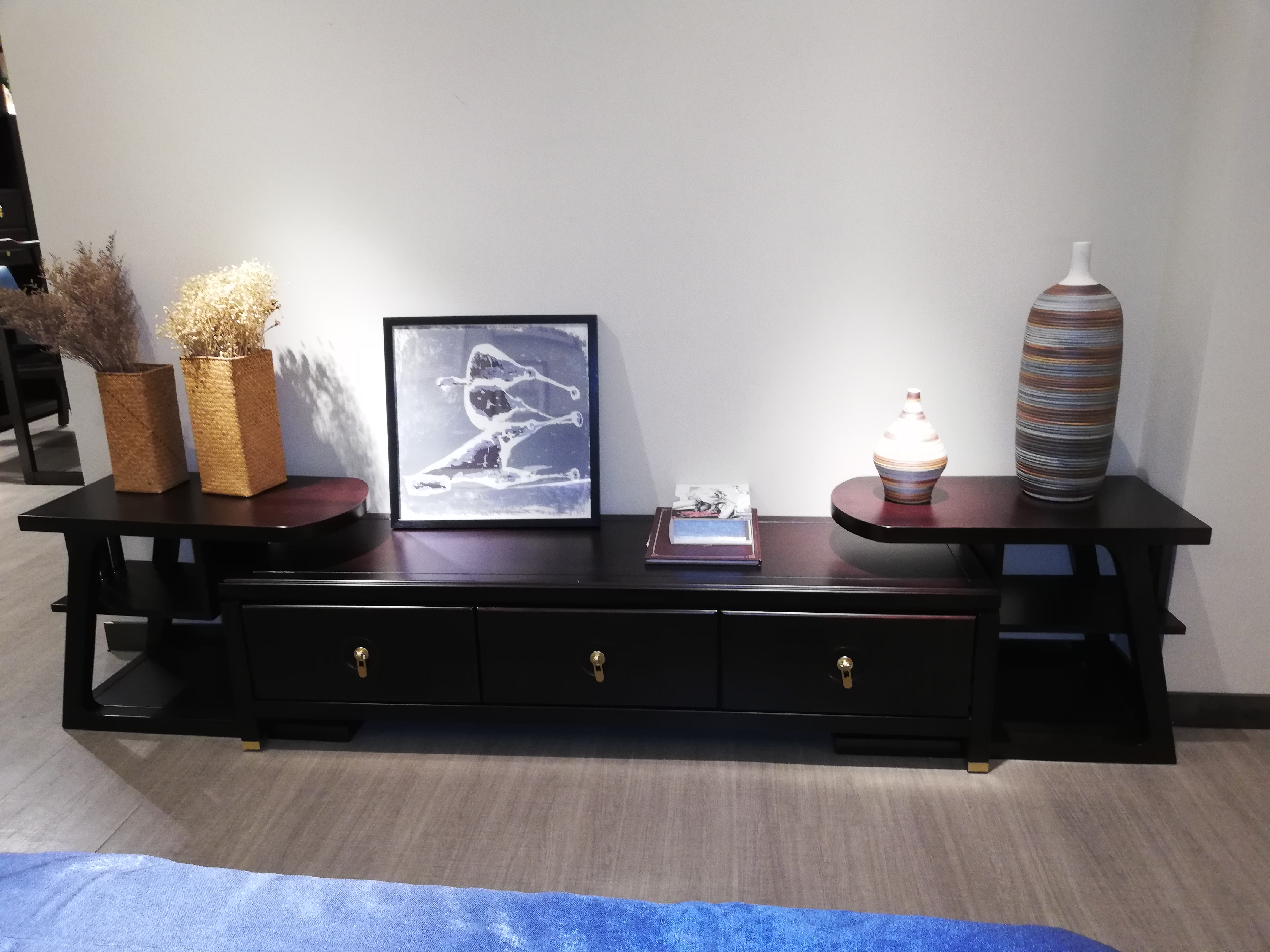 云庭 新中式 FT-222电视柜 非洲加蓬进口乌金木+纯铜五金¥4344