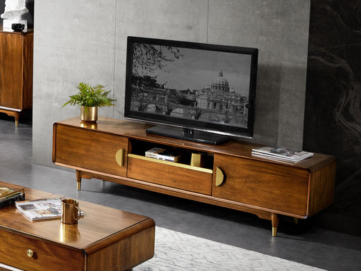宜华简慕 电视柜 北欧·轻奢 奥克榄实木+单瓣豆实木脚+锌合金镀铜脚套 |