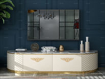 北欧主义 电视柜 北欧 非洲喀麦隆乌金木+多层实木贴五金木皮+亚克力+头层牛皮+岩板银藏锦石