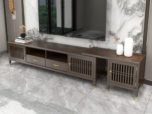 云庭 新中式 FT-222电视柜 非洲加蓬进口乌金木+纯铜五金¥3146