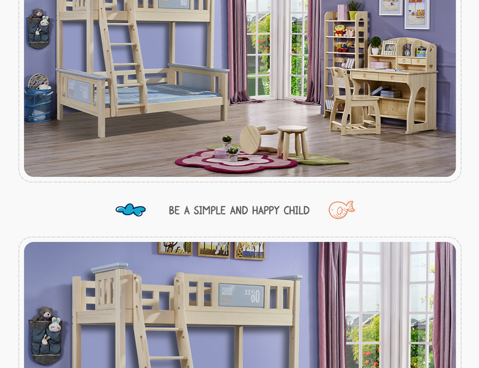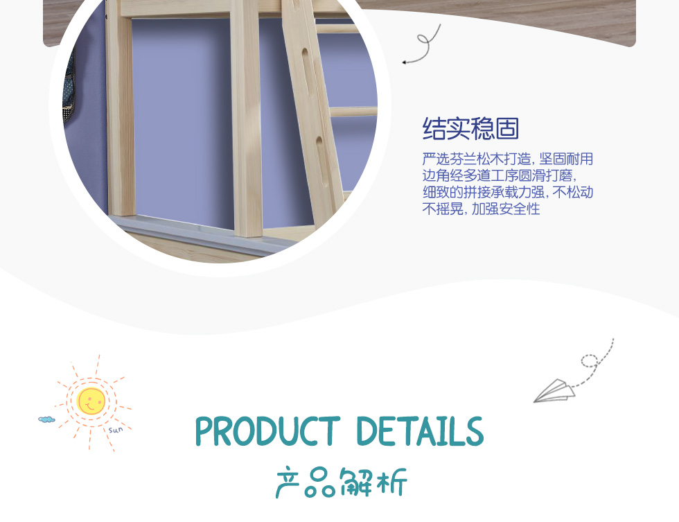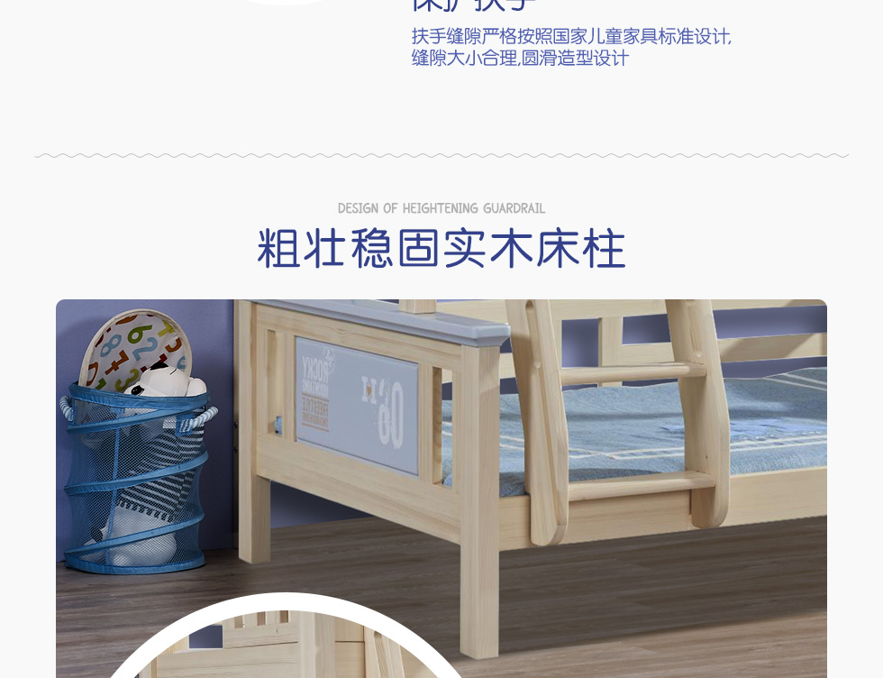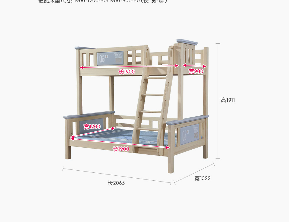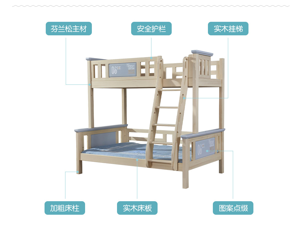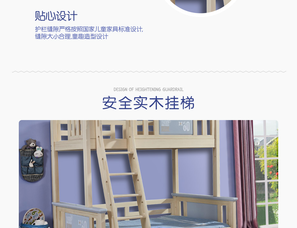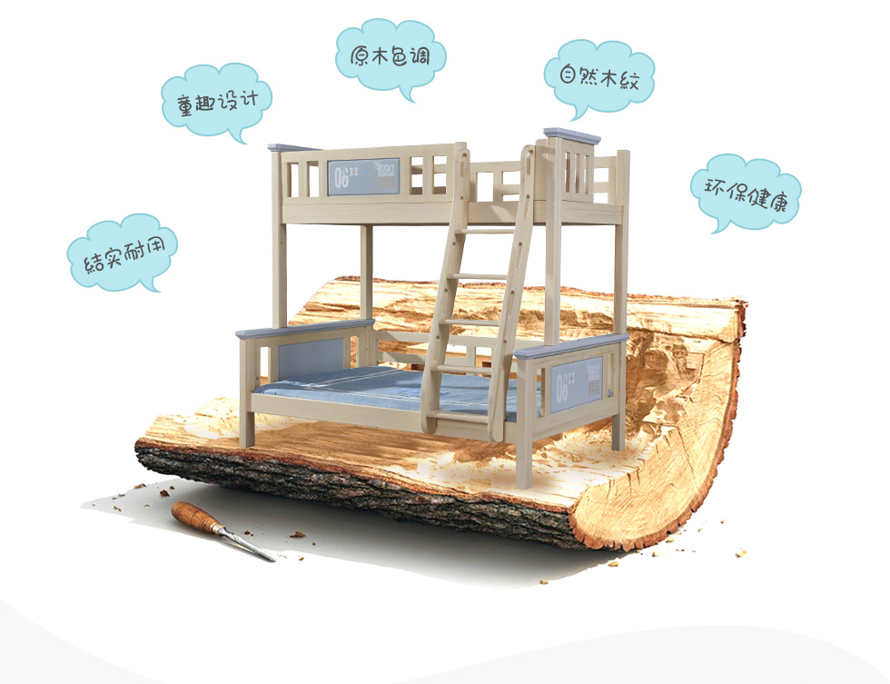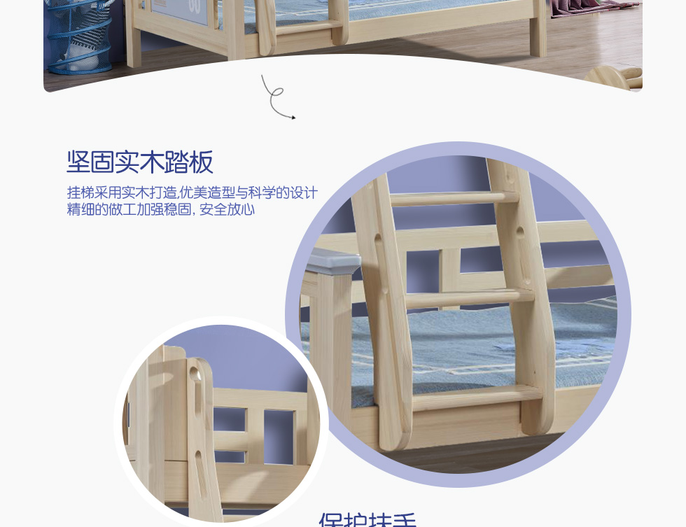 优雅本色 挂梯双层床 儿童家具 芬兰松