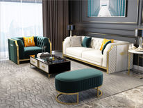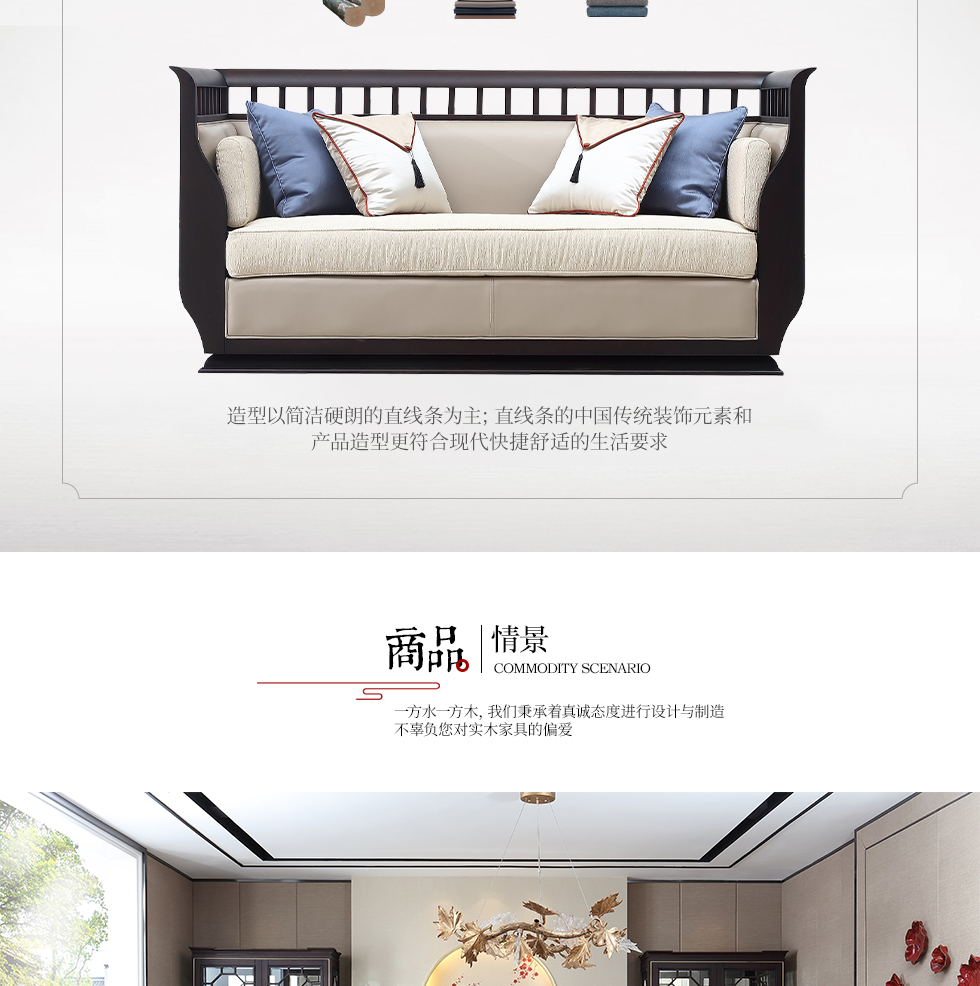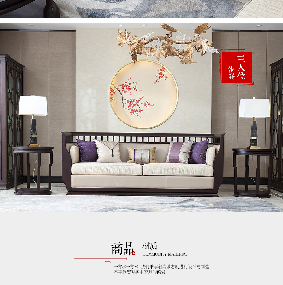 风范 1+2+3组合沙发 新中式 乌金木+布艺+镀铜五金¥6633