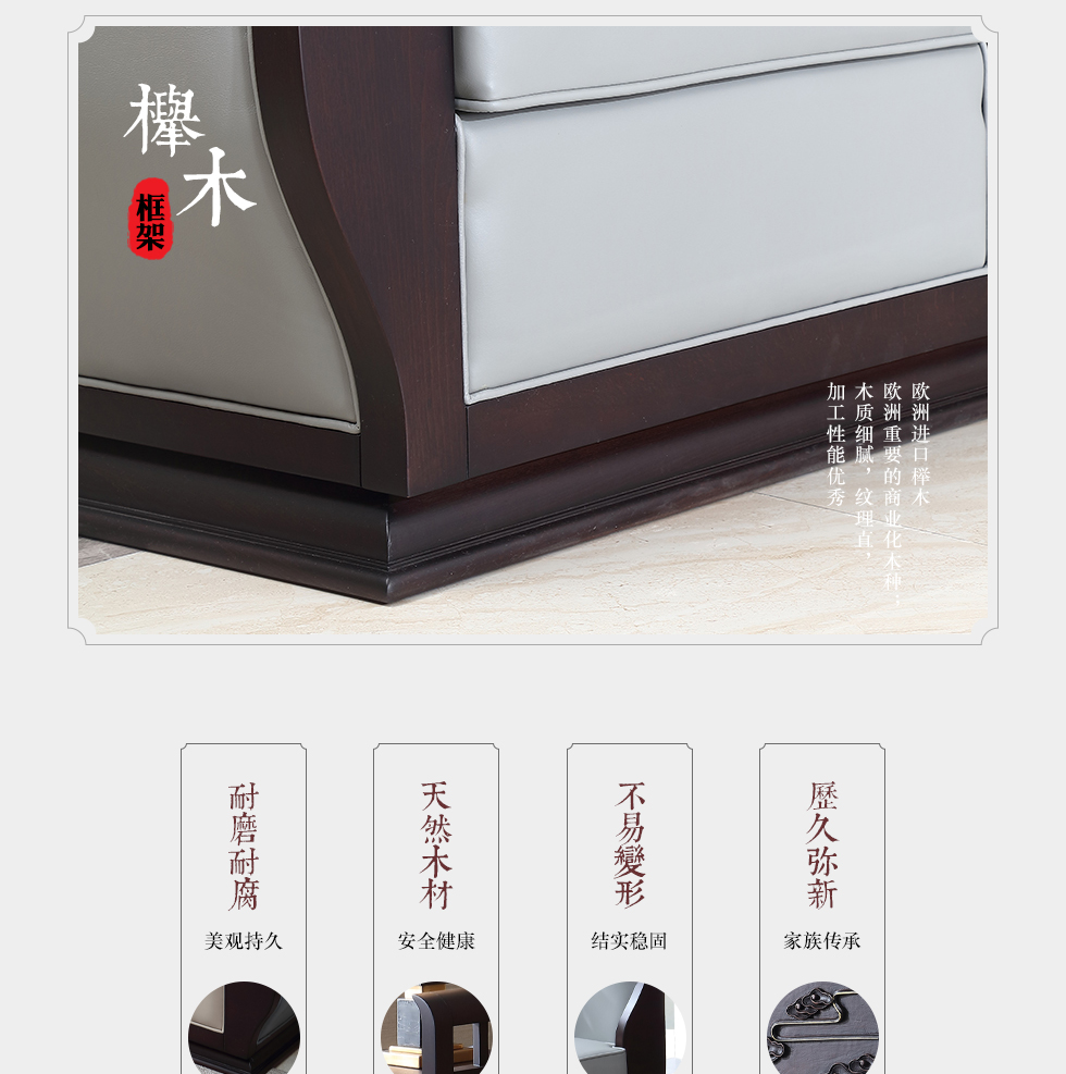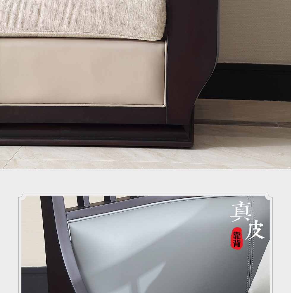 大至 新中式 1+2+3组合沙发 榉木+杂木+靠背真皮+坐垫布+五金