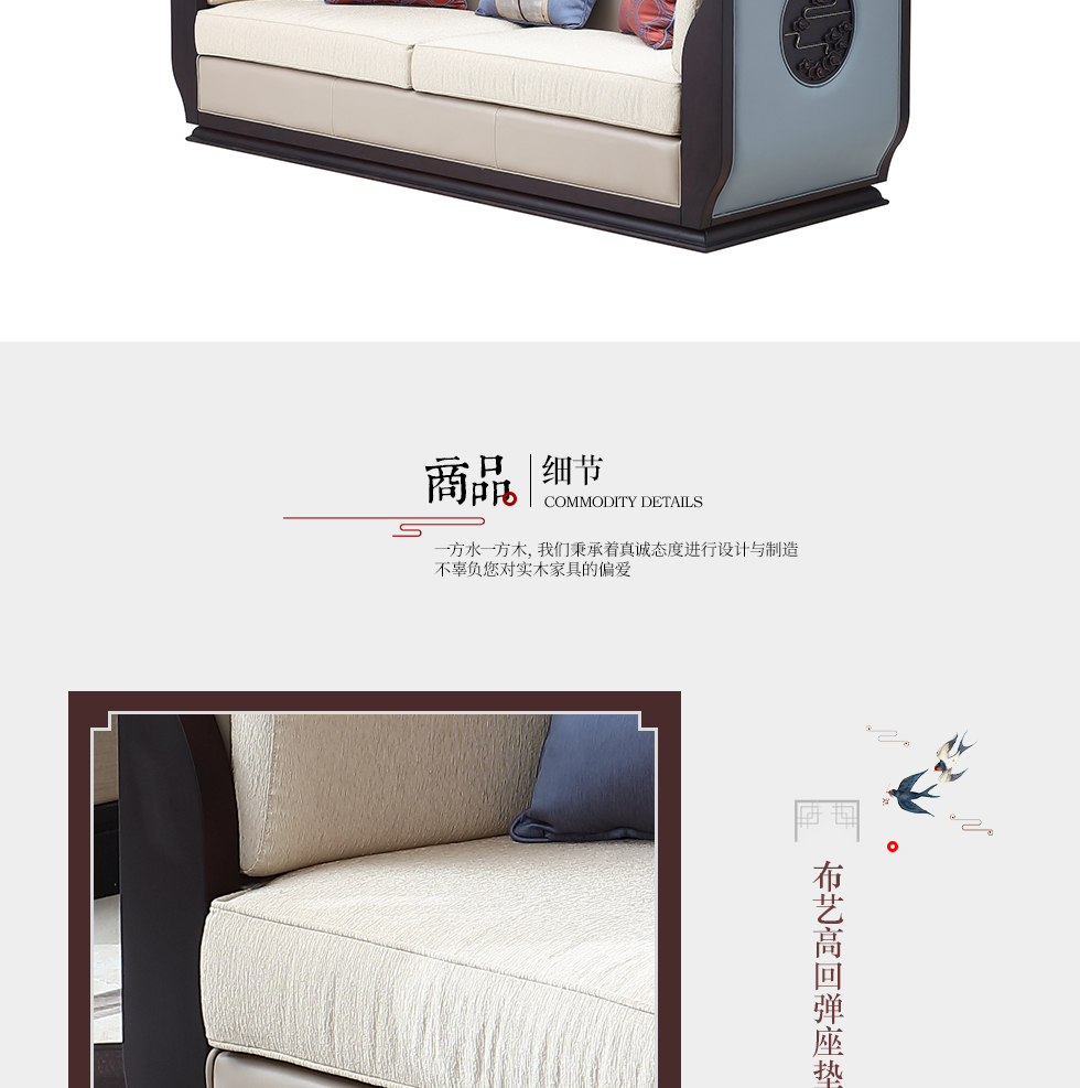 大至 新中式 1+2+3组合沙发 榉木+杂木+布+五金¥7445