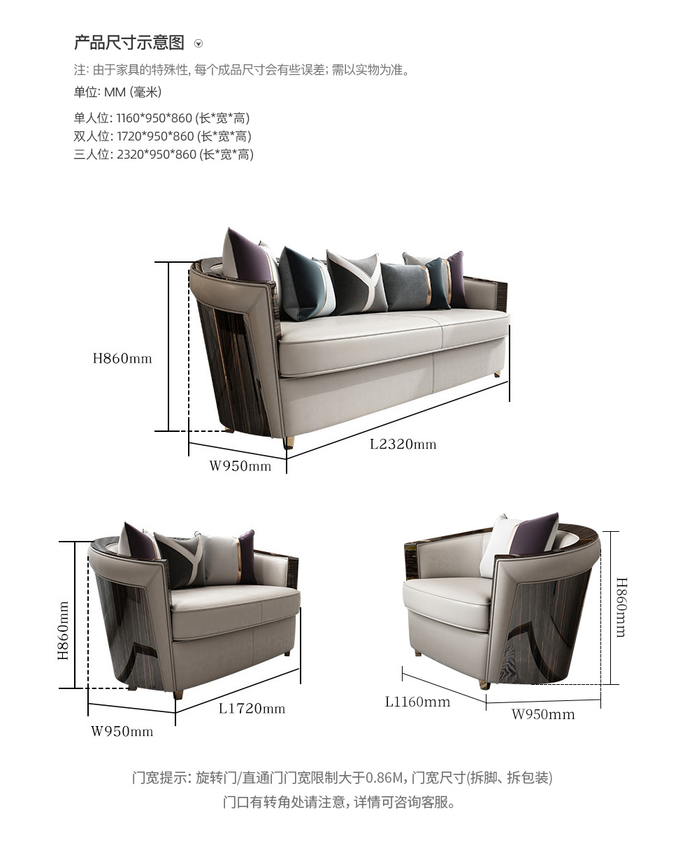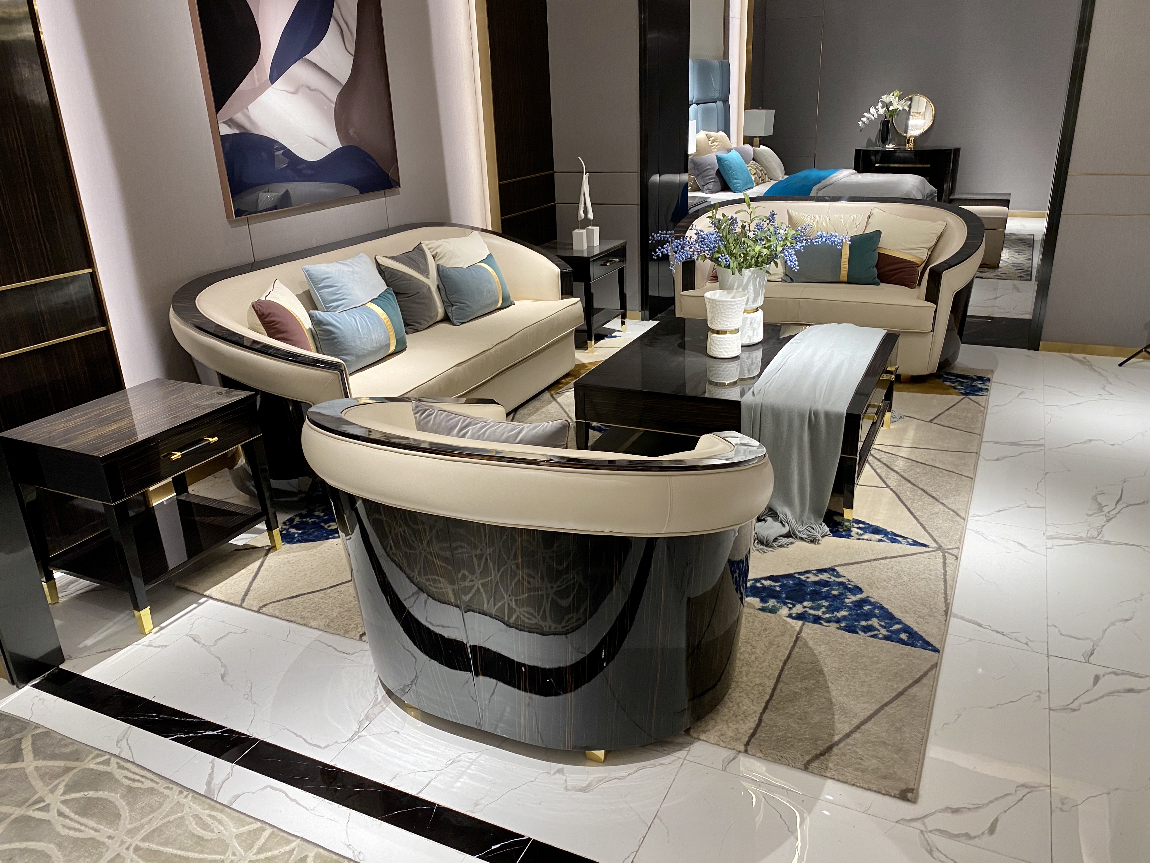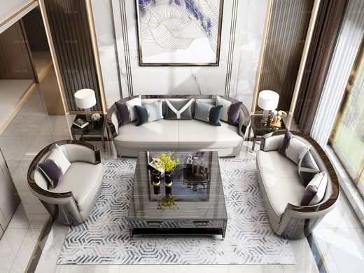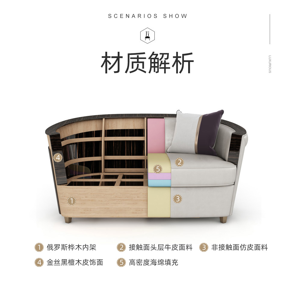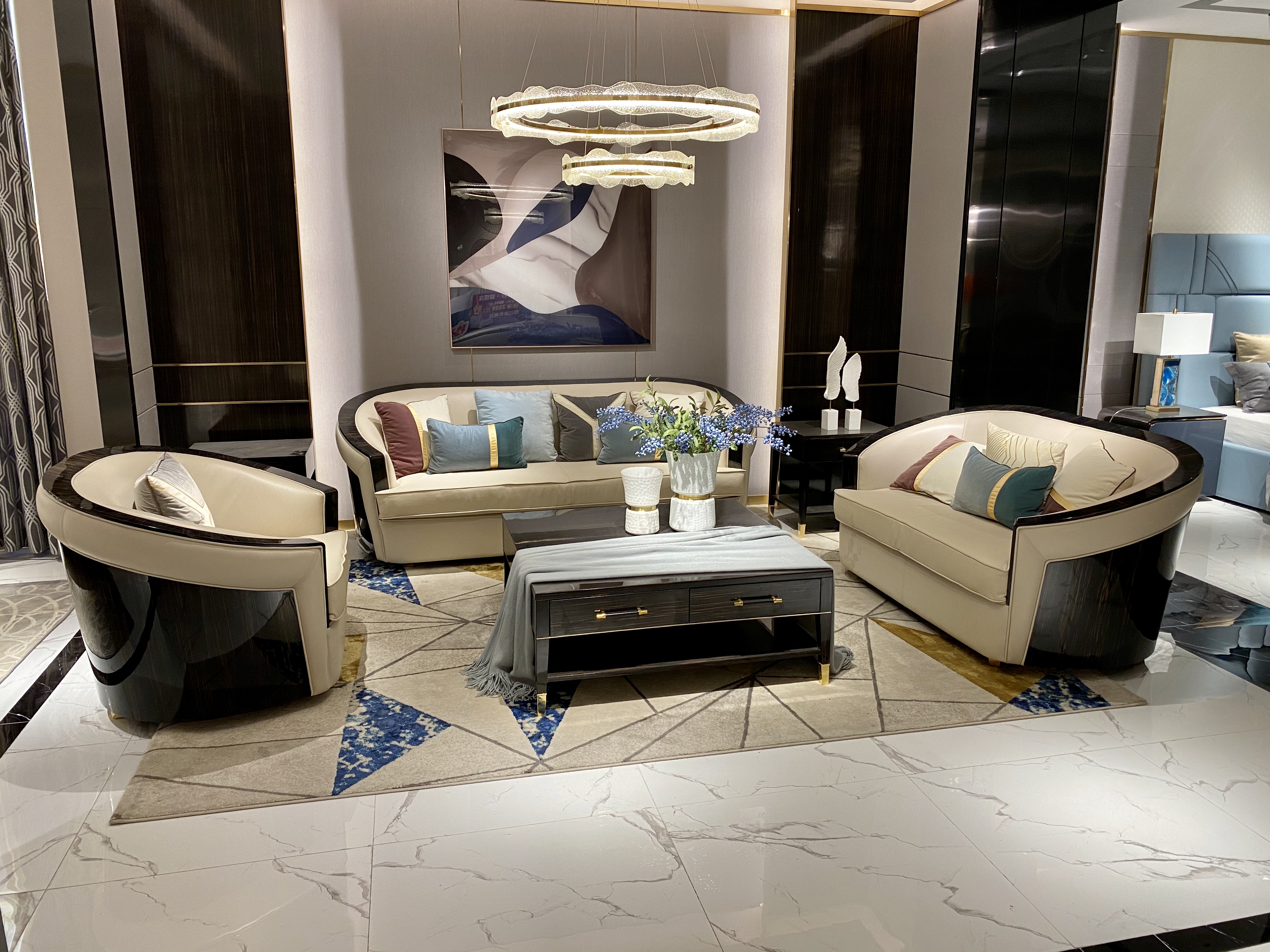 梵迪 1+2+3组合沙发 意式.轻奢 俄罗斯桦木+头层牛皮+仿皮+金丝黑檀木皮+高密度海绵 |