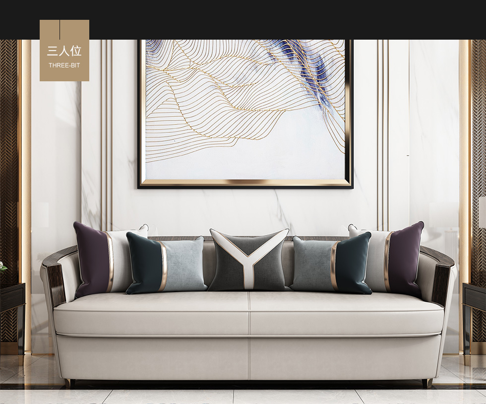 柏拉图 后现代.轻奢 三人位 仿真皮/超纤皮+实木内架+高密度海绵+不锈钢封釉镀钛金